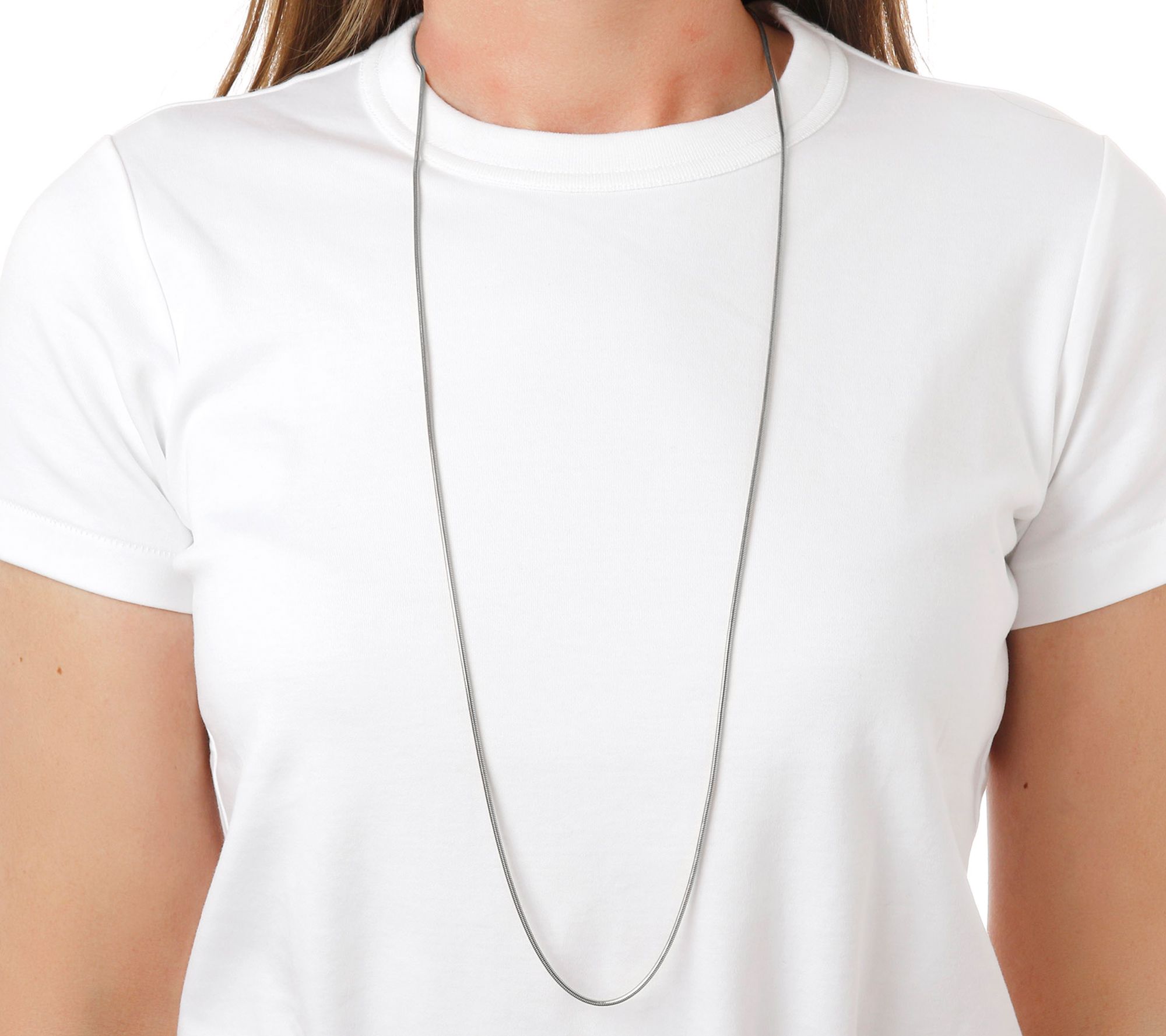 You can never go wrong with some simple glam. This polished snake chain necklace is cold, hard, stainless steel proof! From Steel by Design® Jewelry.
