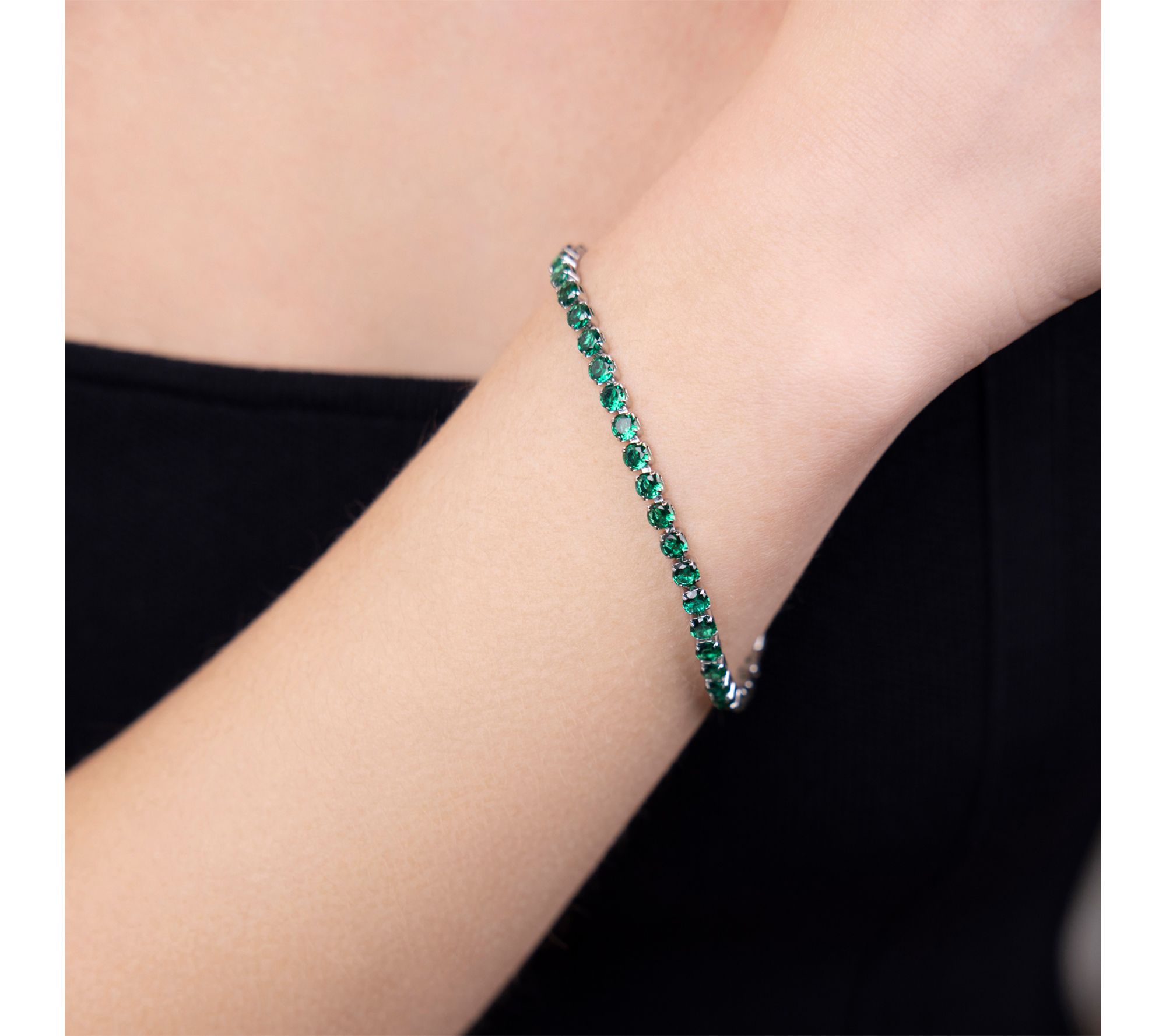 • Tennis bracelet design; prong-set simulated gemstones; polished finish
