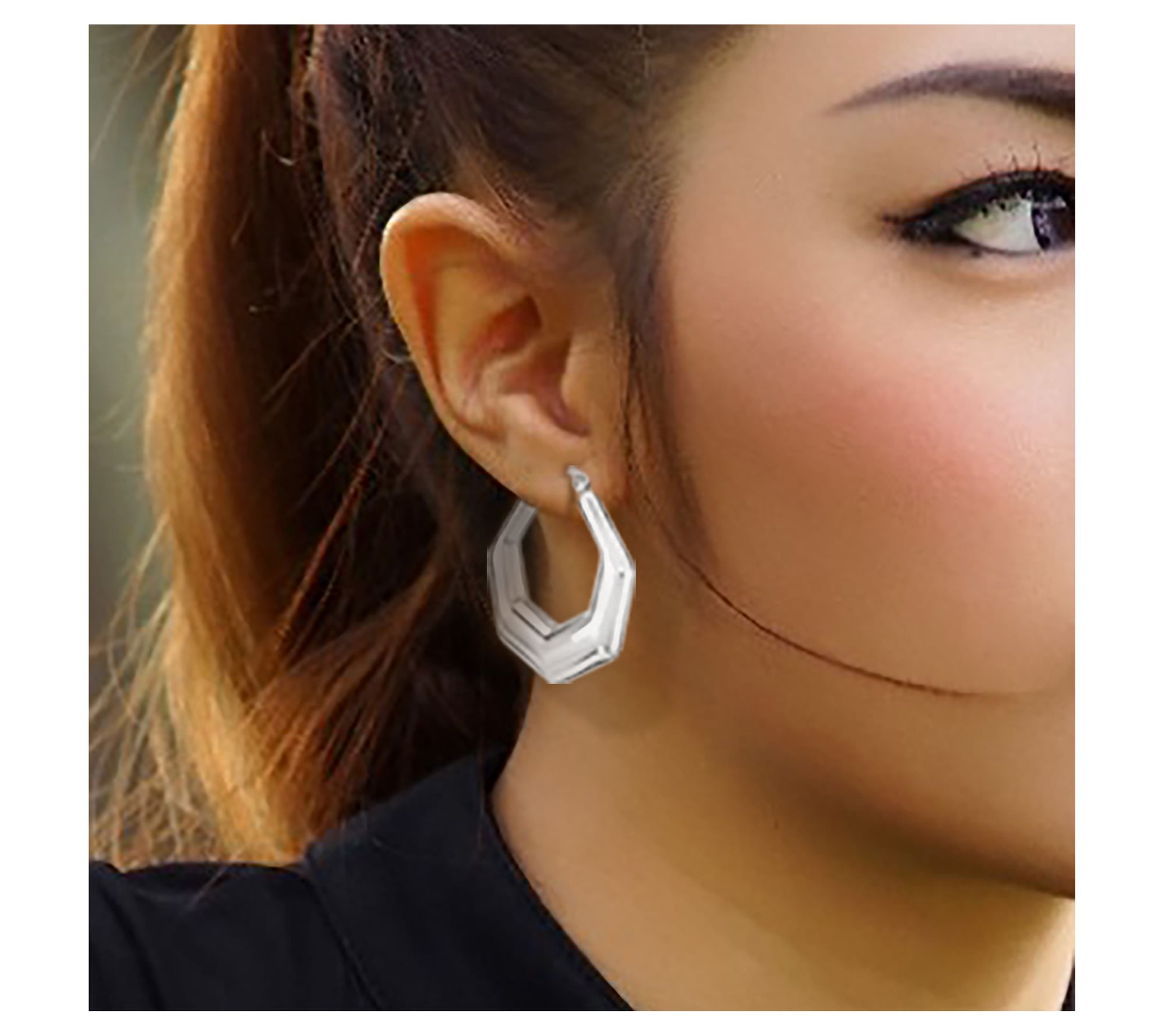 Steel by Design Graduated Hexagon Puff Hoop Earrings