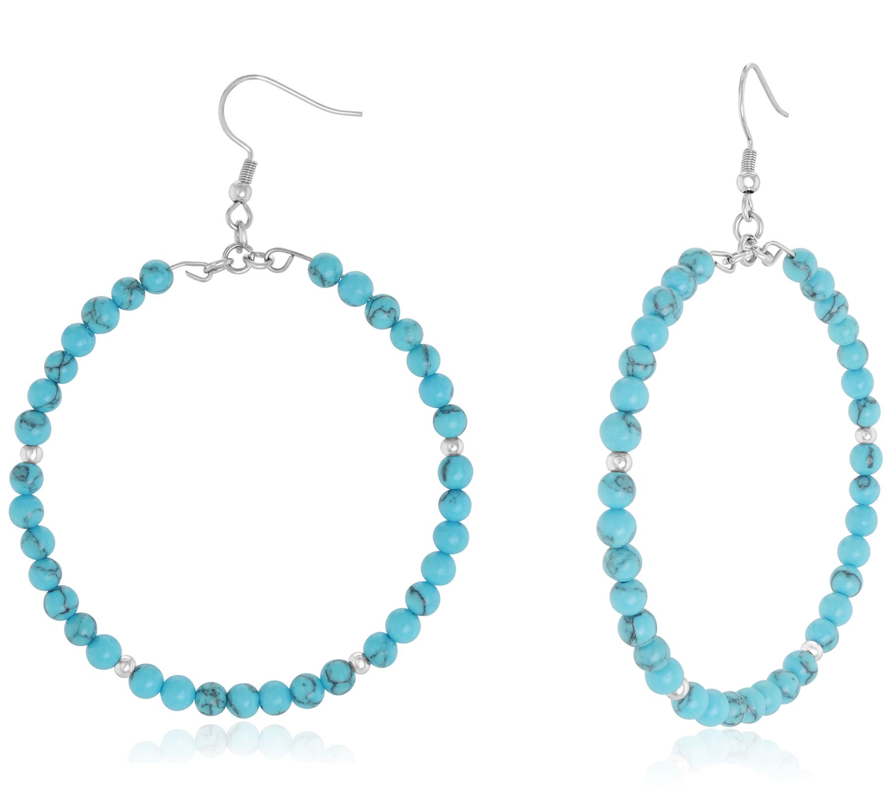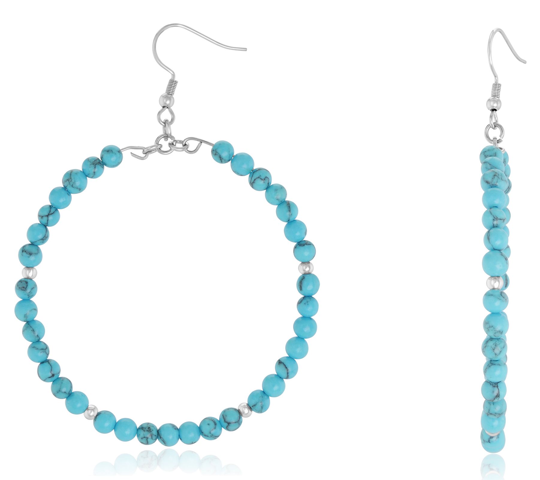 The must-have hoop gets a beaded boost from an all-around howlite design in this front-facing earring. From Steel by Design® Jewelry.