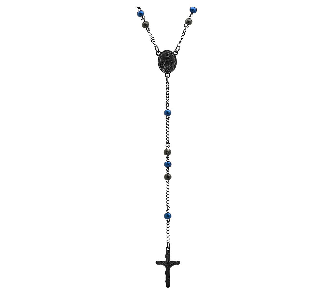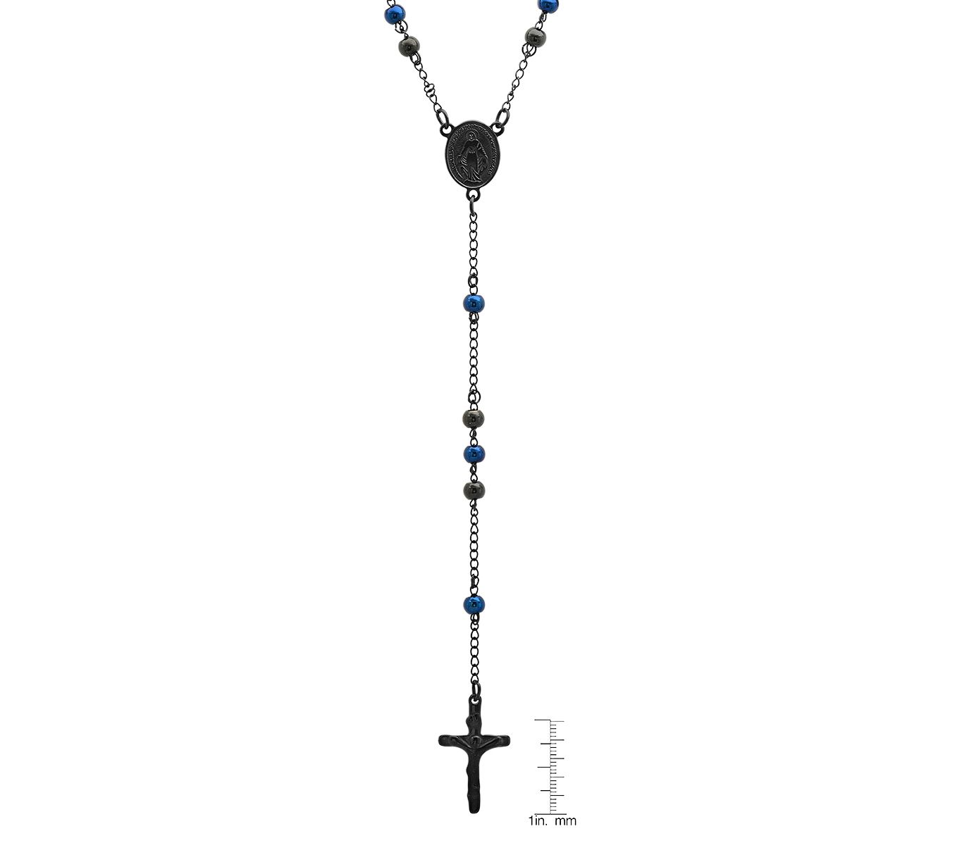 Steel by Design Men's Black & Blue Stainless St eel Rosary