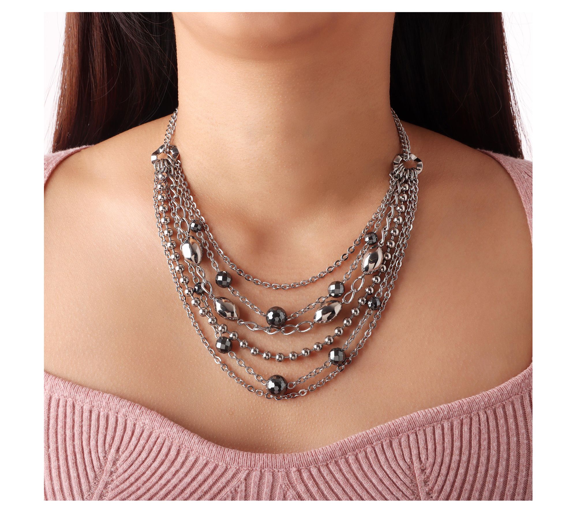 Steel By Design Multi-Strand Hematite Bead Necklace