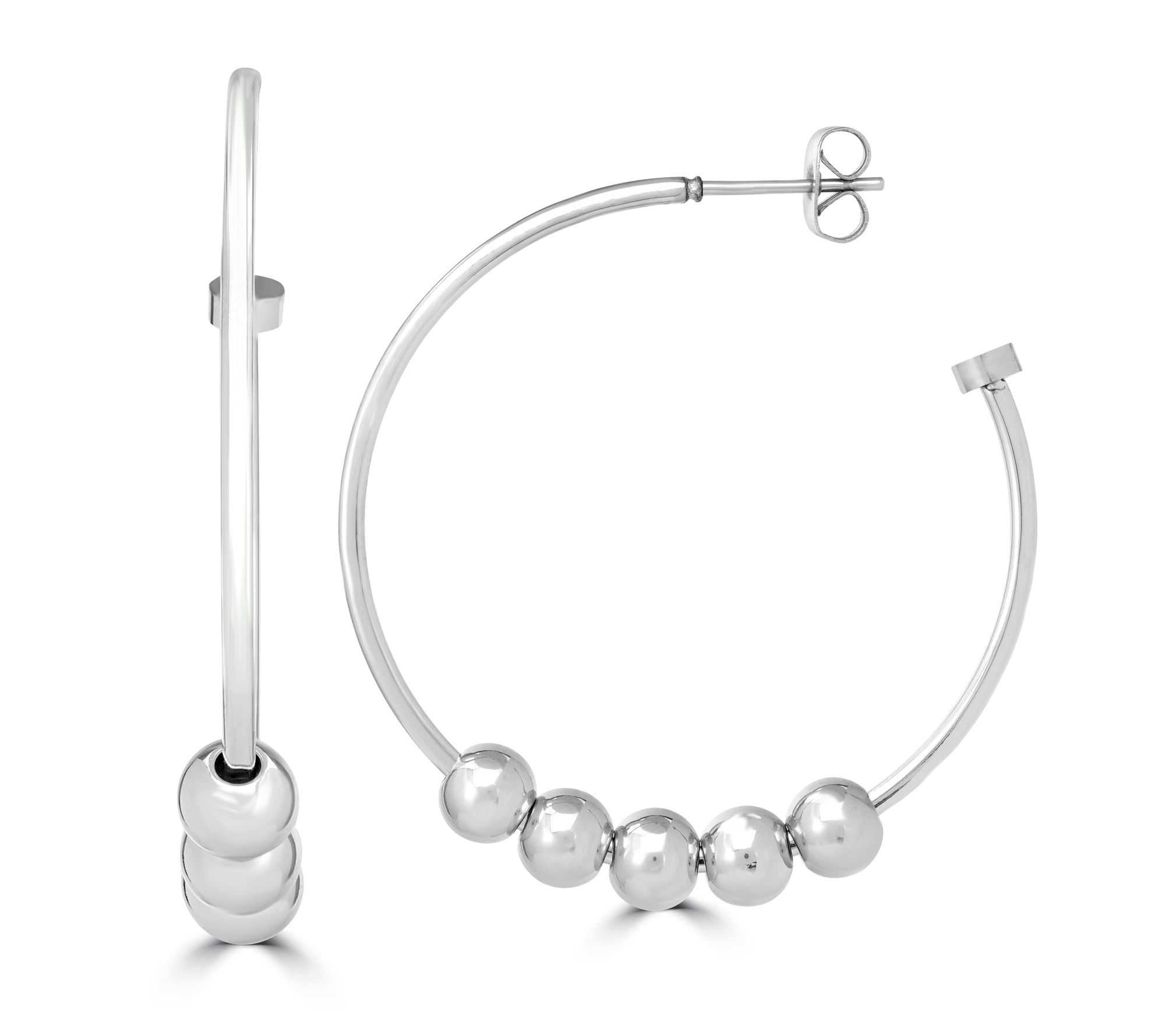 Put a twist on your everyday ensemble with these sleek beaded hoop earrings. From Steel by Design® Jewelry.