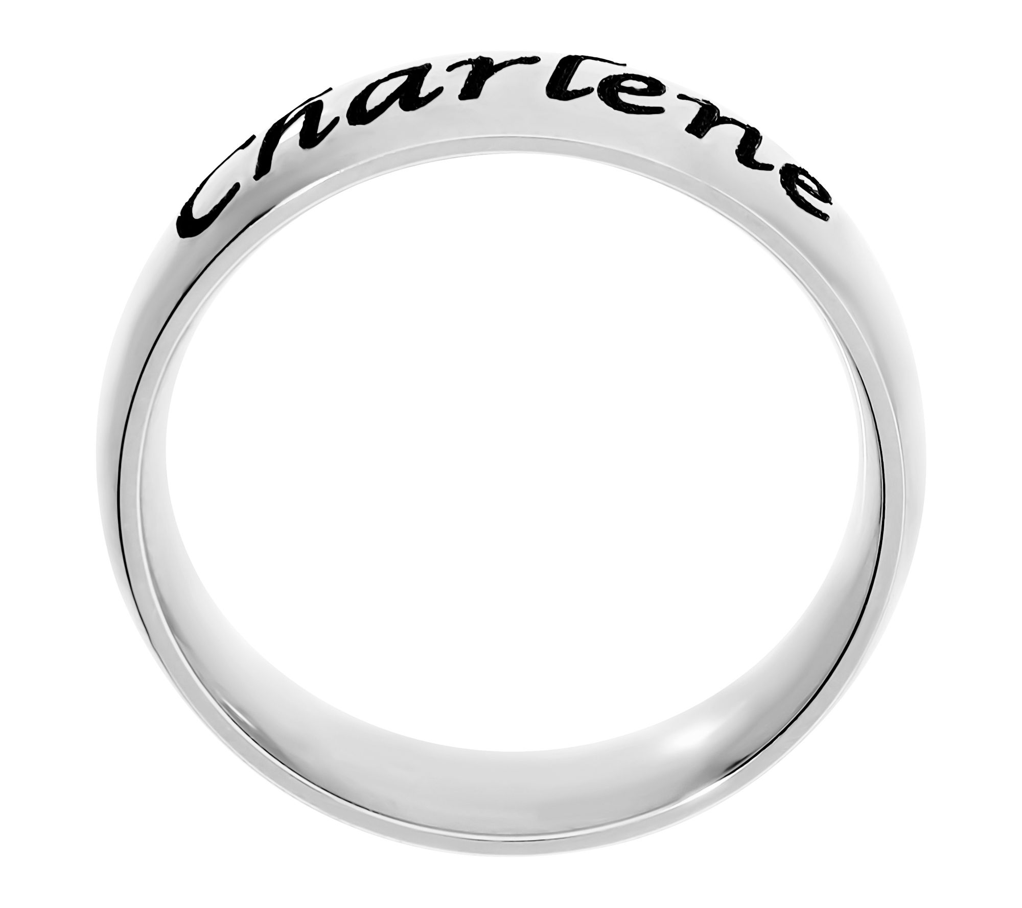 Celebrate every moment together with this personalized wedding band ring, designed to symbolize your lasting commitment. Crafted in a sleek 6mm width, this piece makes a meaningful statement -- whether it's your big day, an anniversary, or simply to remind someone you're always by their side. From Steel by Design®.