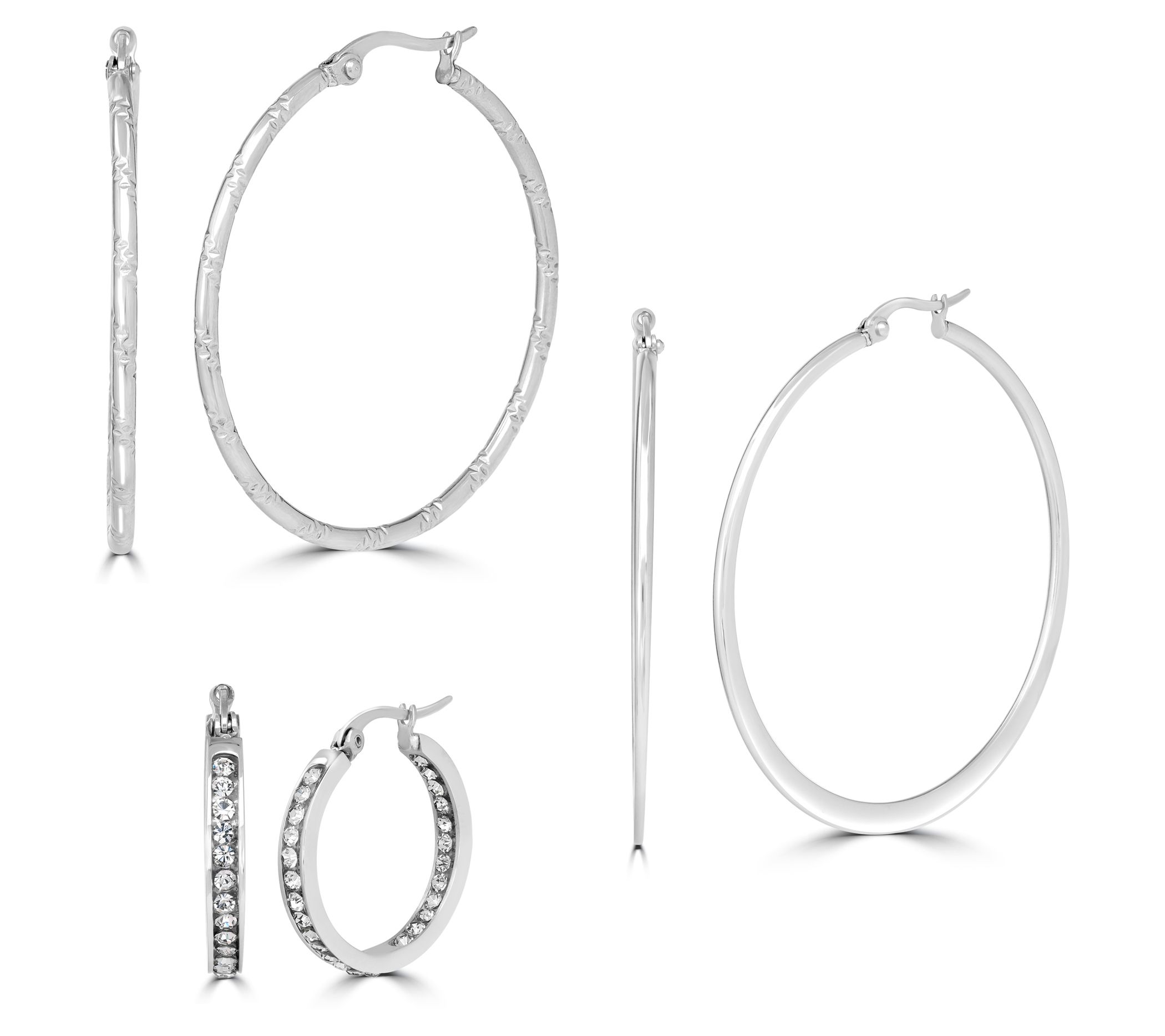 Add the perfect texture to your daily looks with this sweet set of hoop earrings. From Steel by Design® Jewelry.