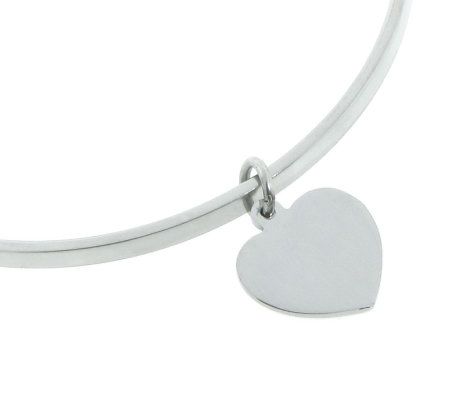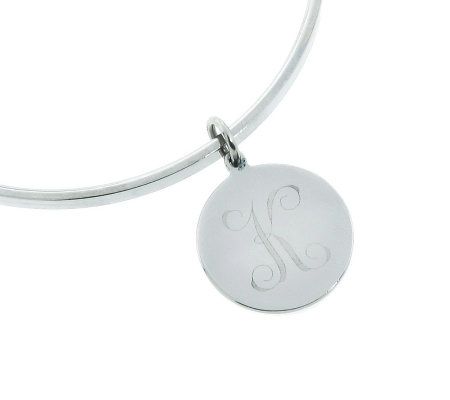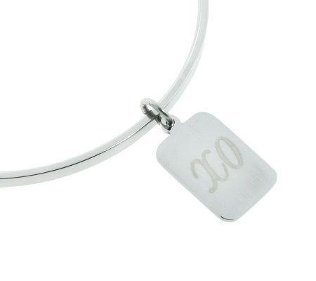 The personal touch. Stack up the style with this set of high-polished stainless steel bangles. Each bracelet shows off a different charm, from a sweet heart, to messages of XO and LOVE, to a charm inscribed with your very own initial. From Steel by Design(R) Jewelry.