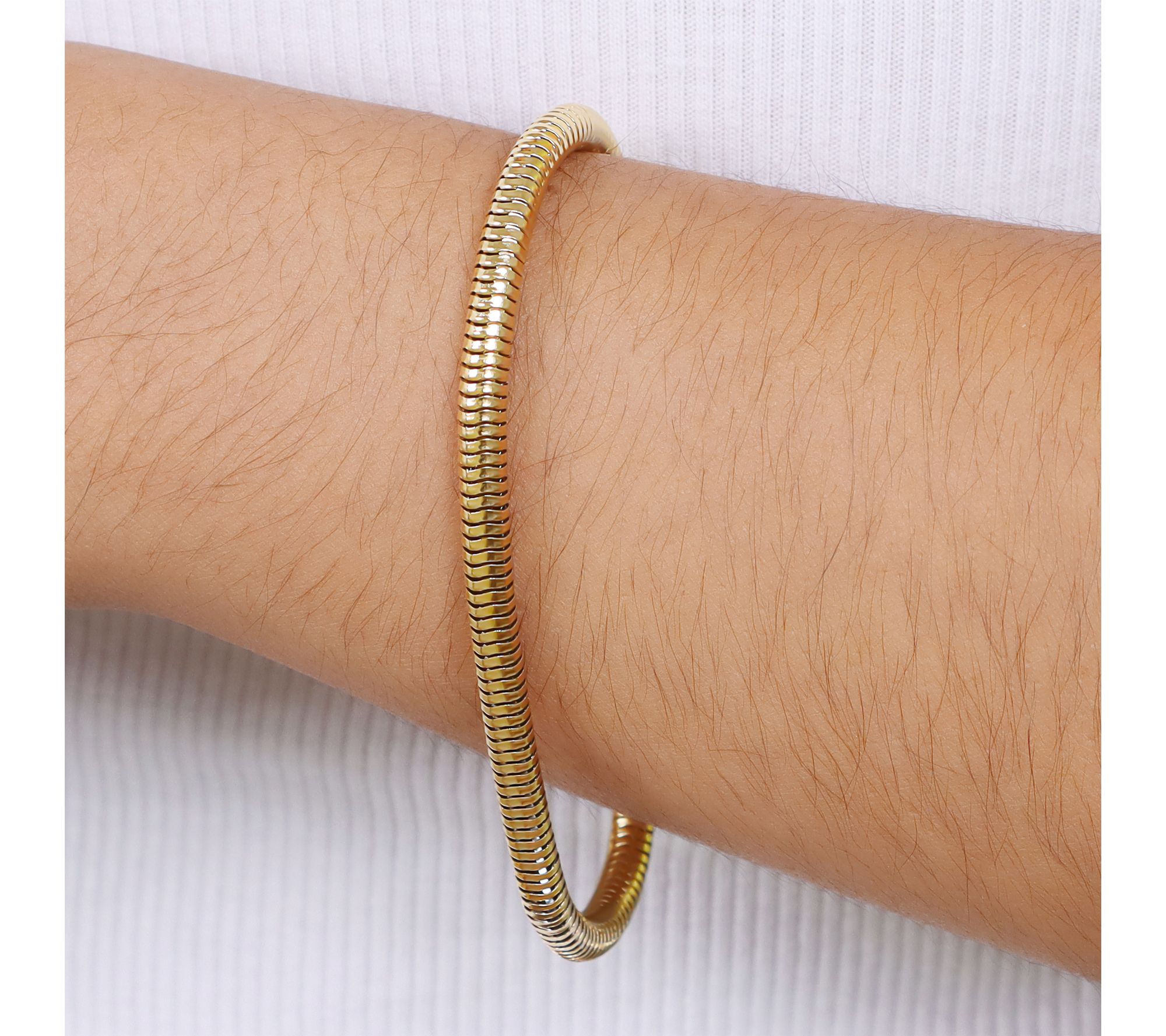 Slip on this snake chain bracelet for a touch of modern elegance that pairs effortlessly with everything from your casual denim to a sleek evening outfit. The smooth, flexible design wraps comfortably around your wrist, while the convenient magnet closure makes it easy to wear solo or stack with your favorite pieces. From Steel by Design®.
