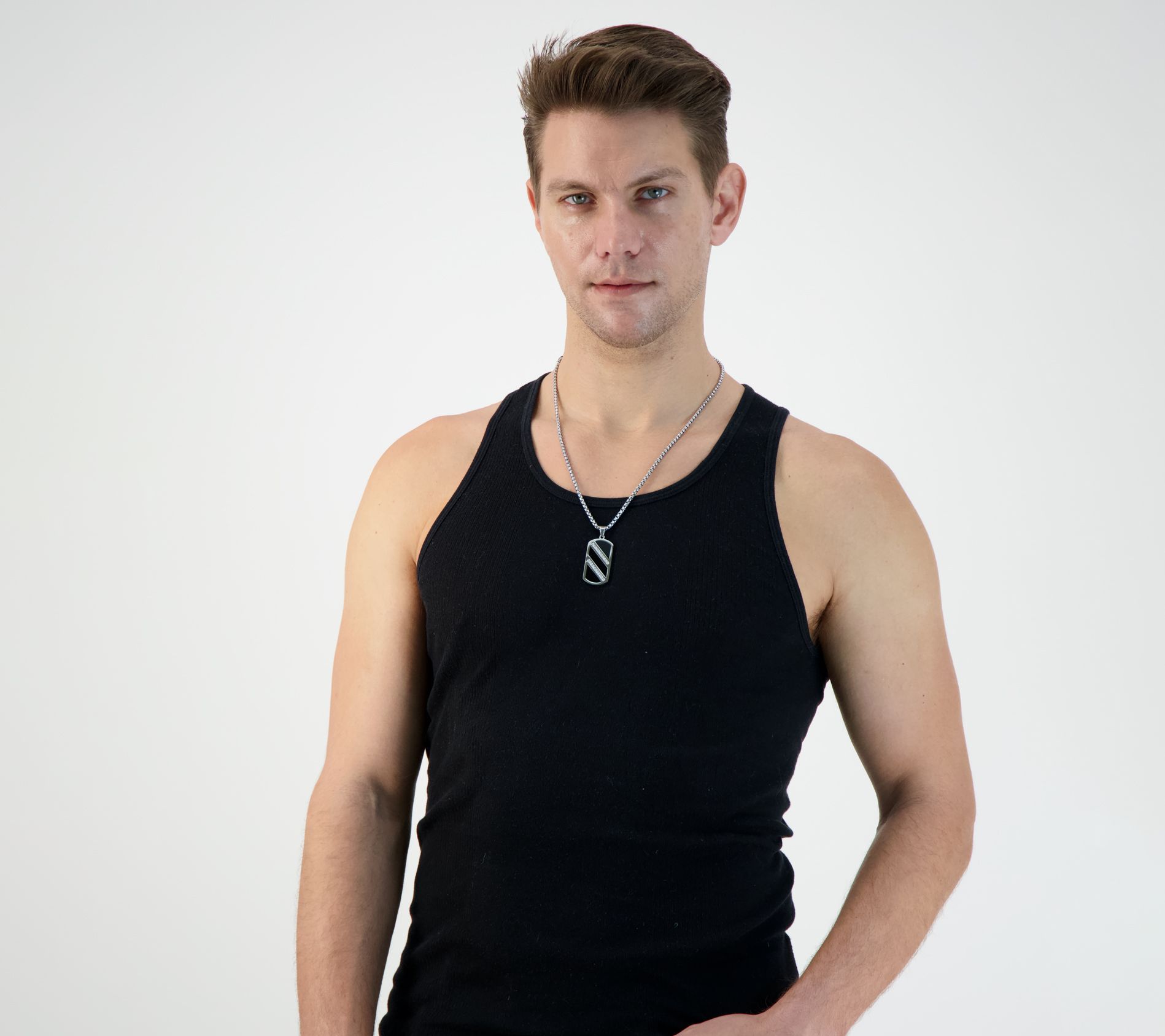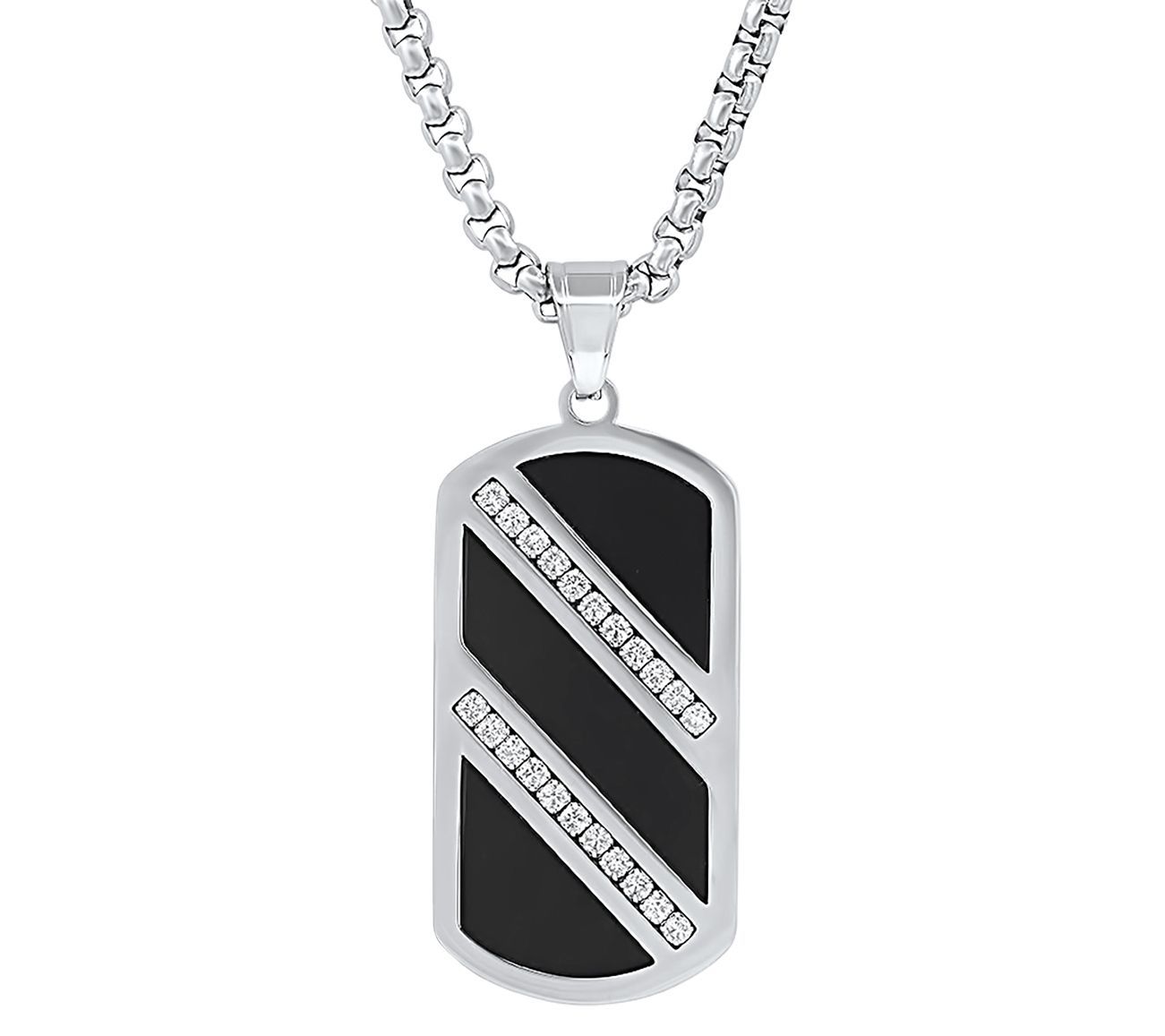 • Dog tag pendant with simulated onyx background and two rows of cubic zirconia stones