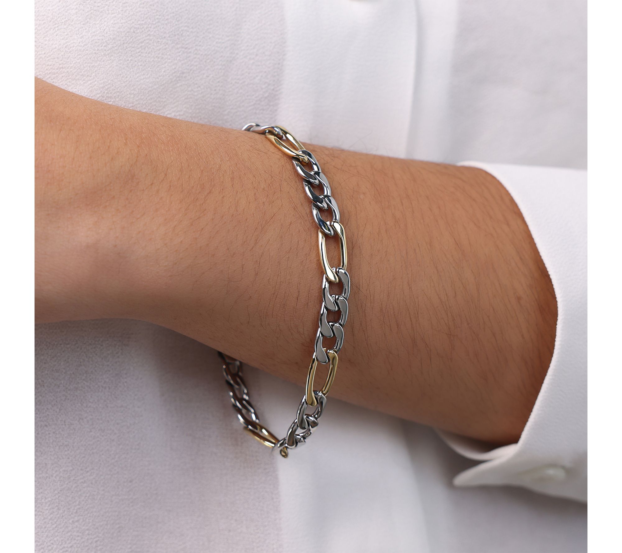 Steel By Design Two Tone Figaro Link Bracelet