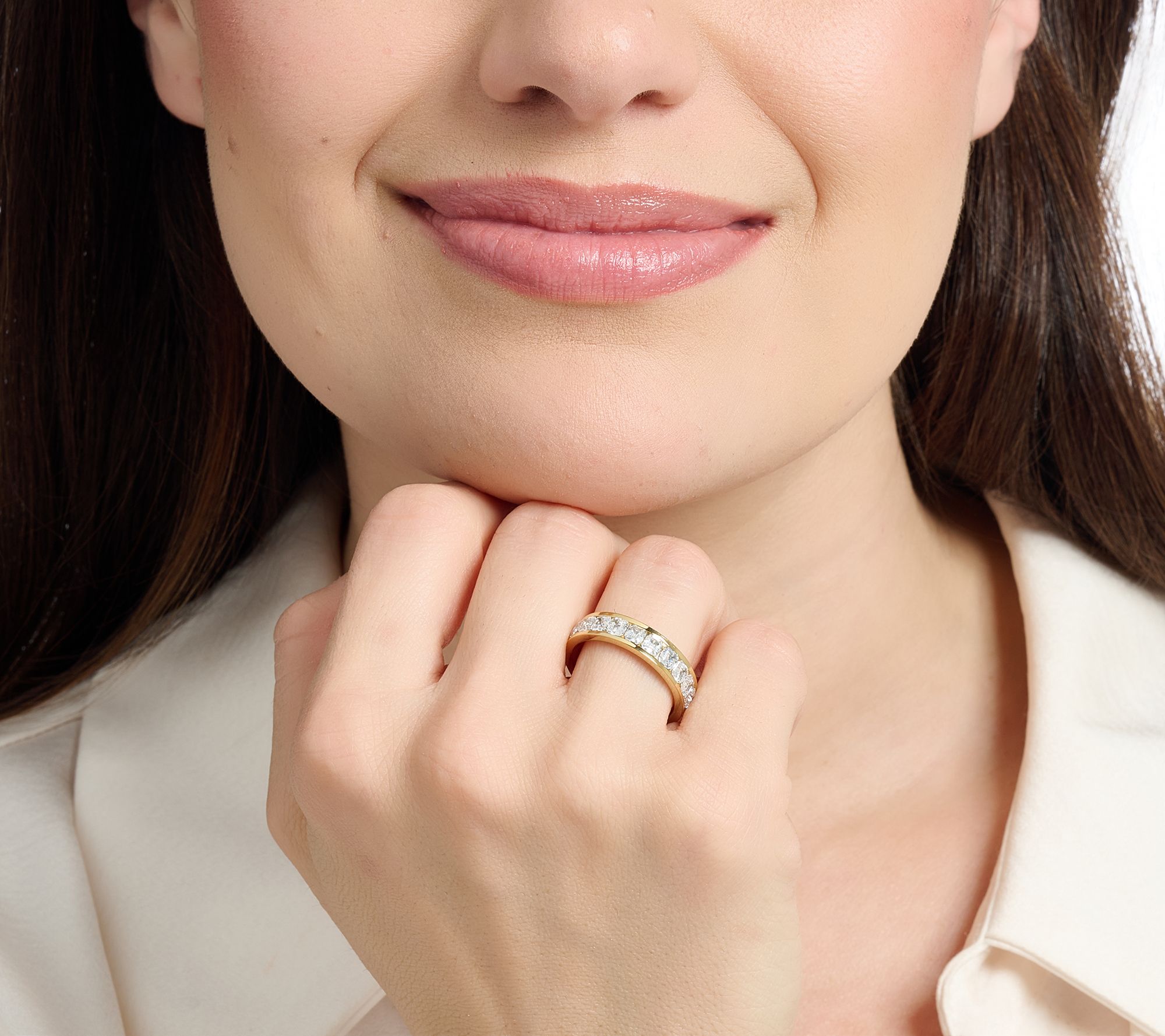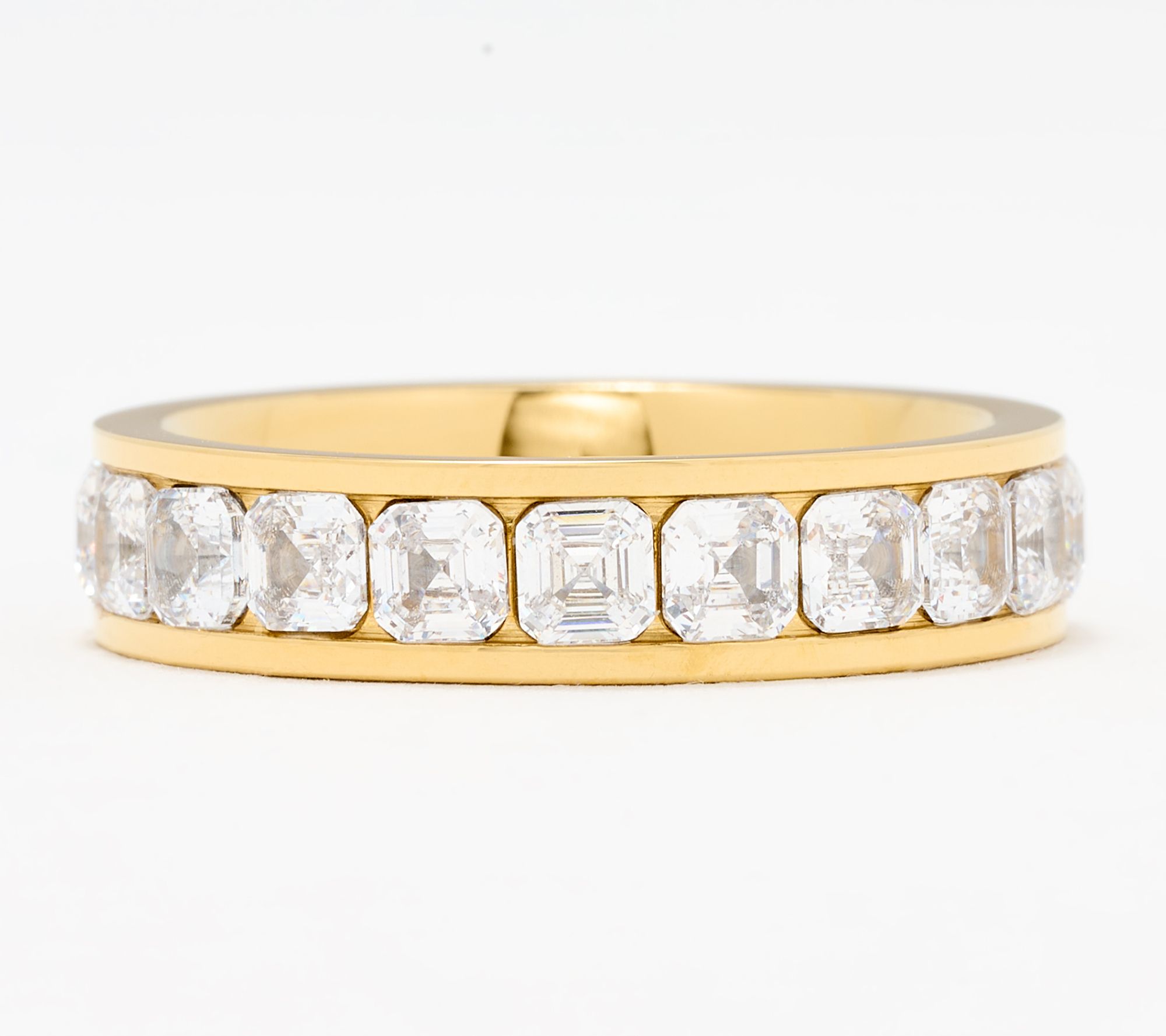 Forever and ever. With a classic eternity design that's easy to stack or wear solo, this sparkly Asscher-cut ring is the accessory that always seems to work. Grab it for yourself or gift it -- the fluid, high-shine style is a superb reflection of your commitment to someone or something (like that passion project you've embarked on)!