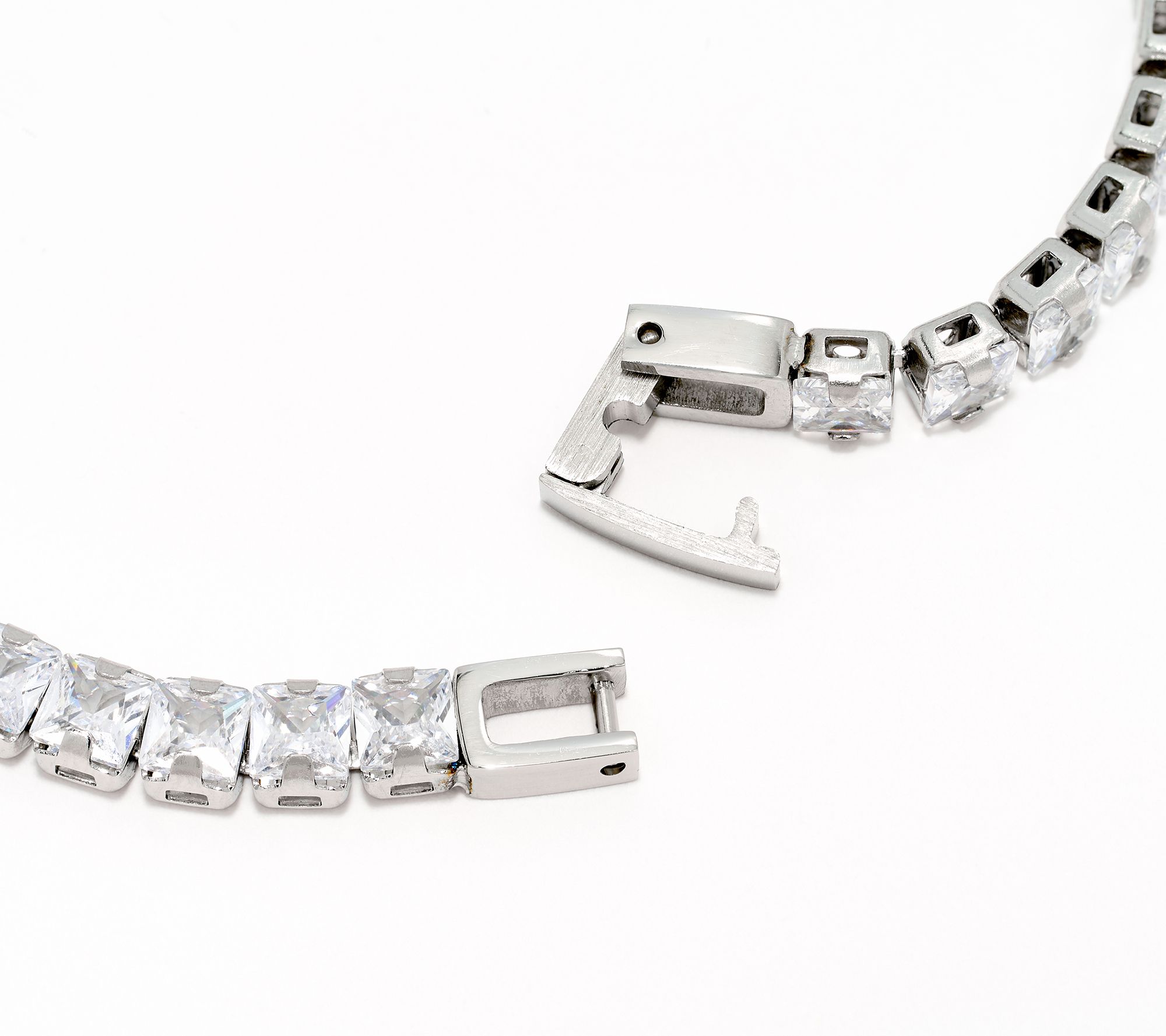 Tennis-style bracelet with princess-cut, clear Diamonique simulated diamonds; polished finish