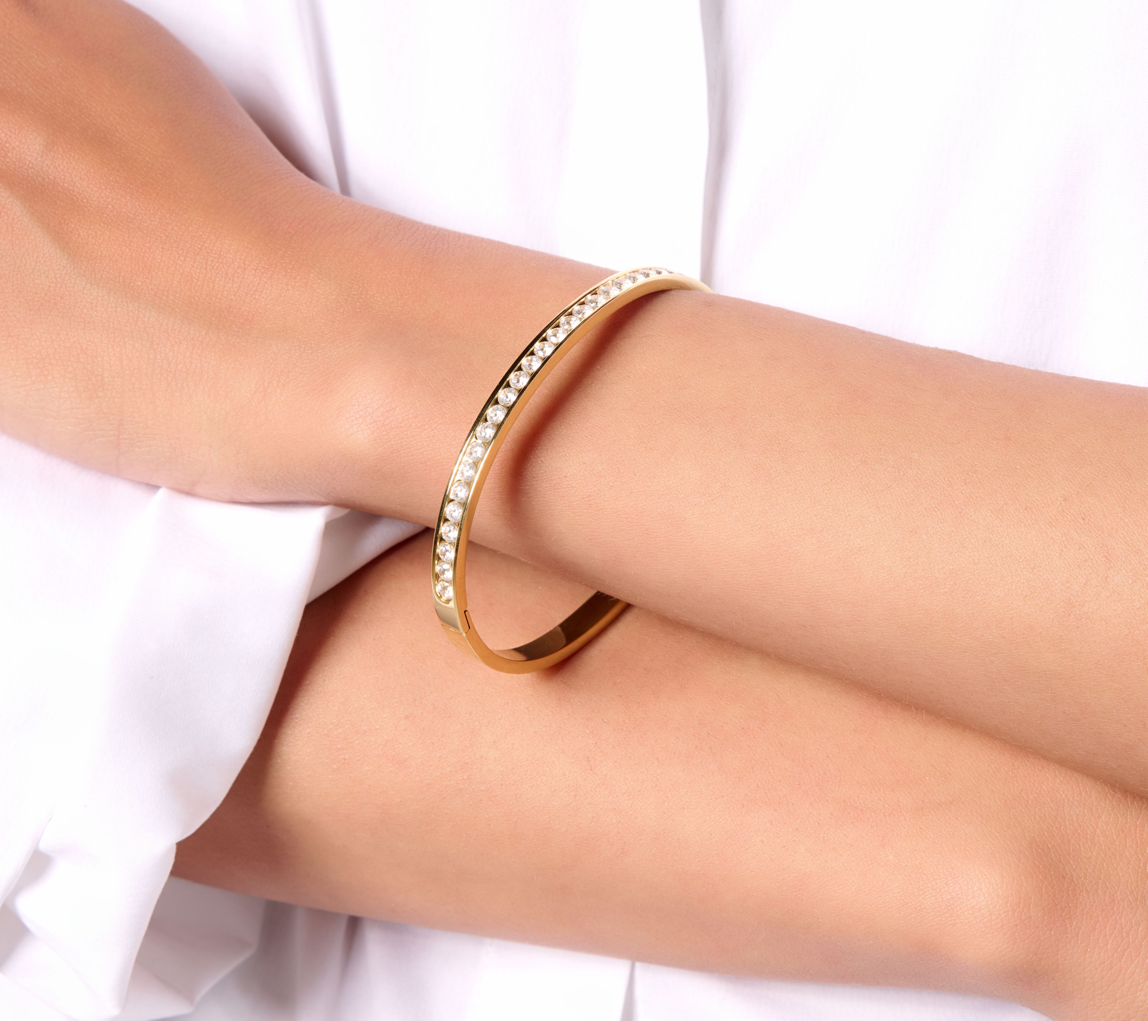 Whether you are heading out for a quick lunch or an evening event, a flash of polished sparkle at your wrist is always in style. This bangle makes a statement with rows of clear cubic zirconia Diamonique simulated diamonds that catch the light with every move -- no matter if you wear it on its own or stacked for maximum impact.