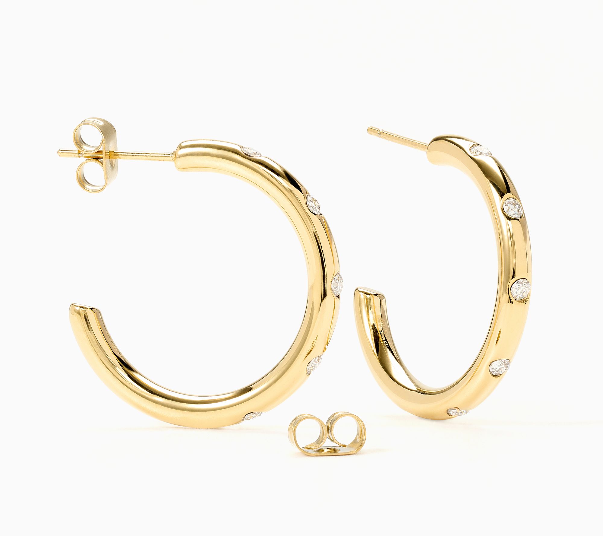 The sought-after hoop silhouette with a splash of sparkle.... sign us up for this elevated style staple! Durably designed in stainless steel and dotted with cubic zirconia Diamonique simulated diamonds, these polished and perfectly sized hoops have what it takes to infuse subtle sophistication into everyday moments, yet they sport enough dazzle to add a spark to special occasions. But don't take our word for it. Wear them and see for yourself (compliments are sure to follow!)