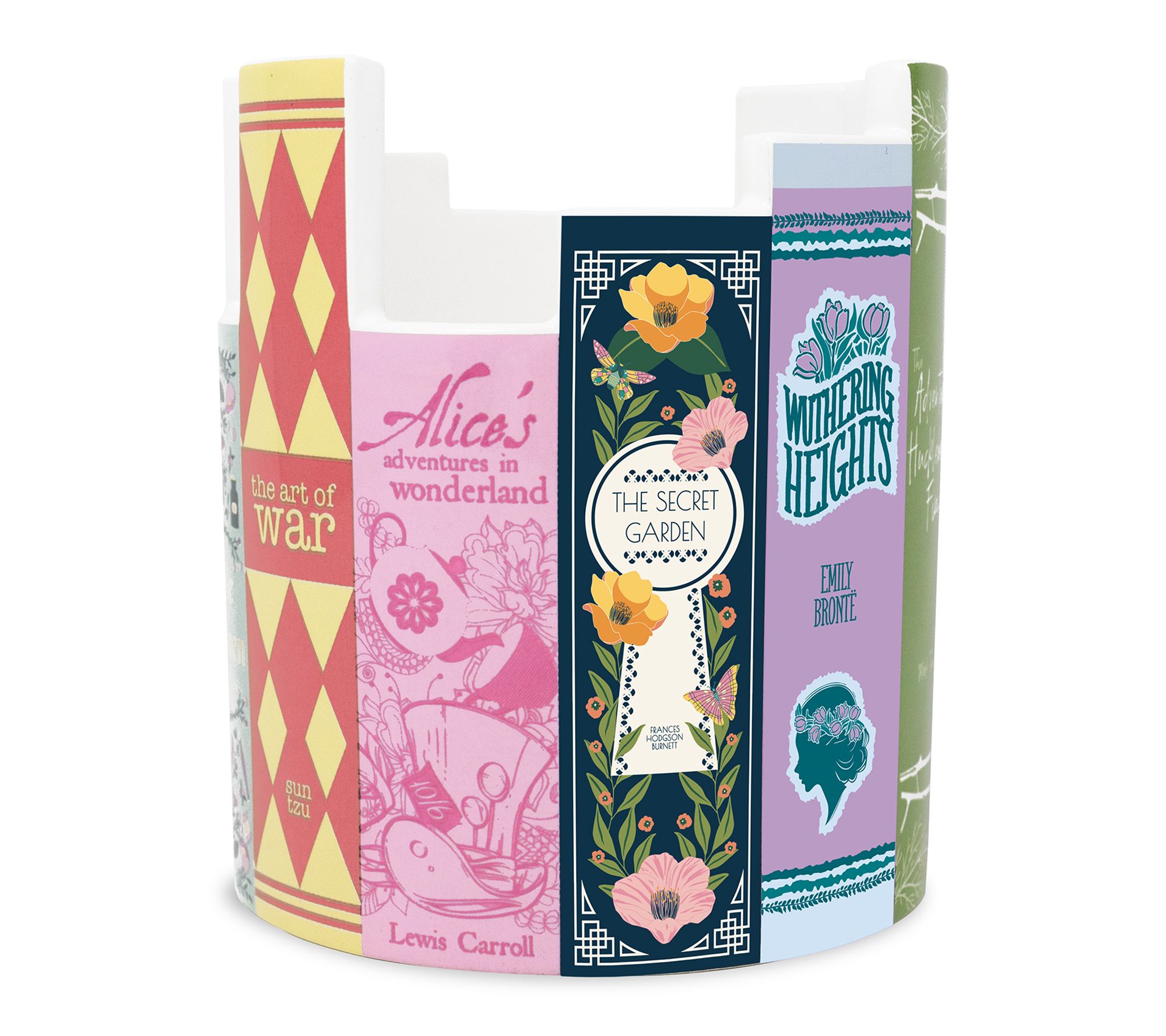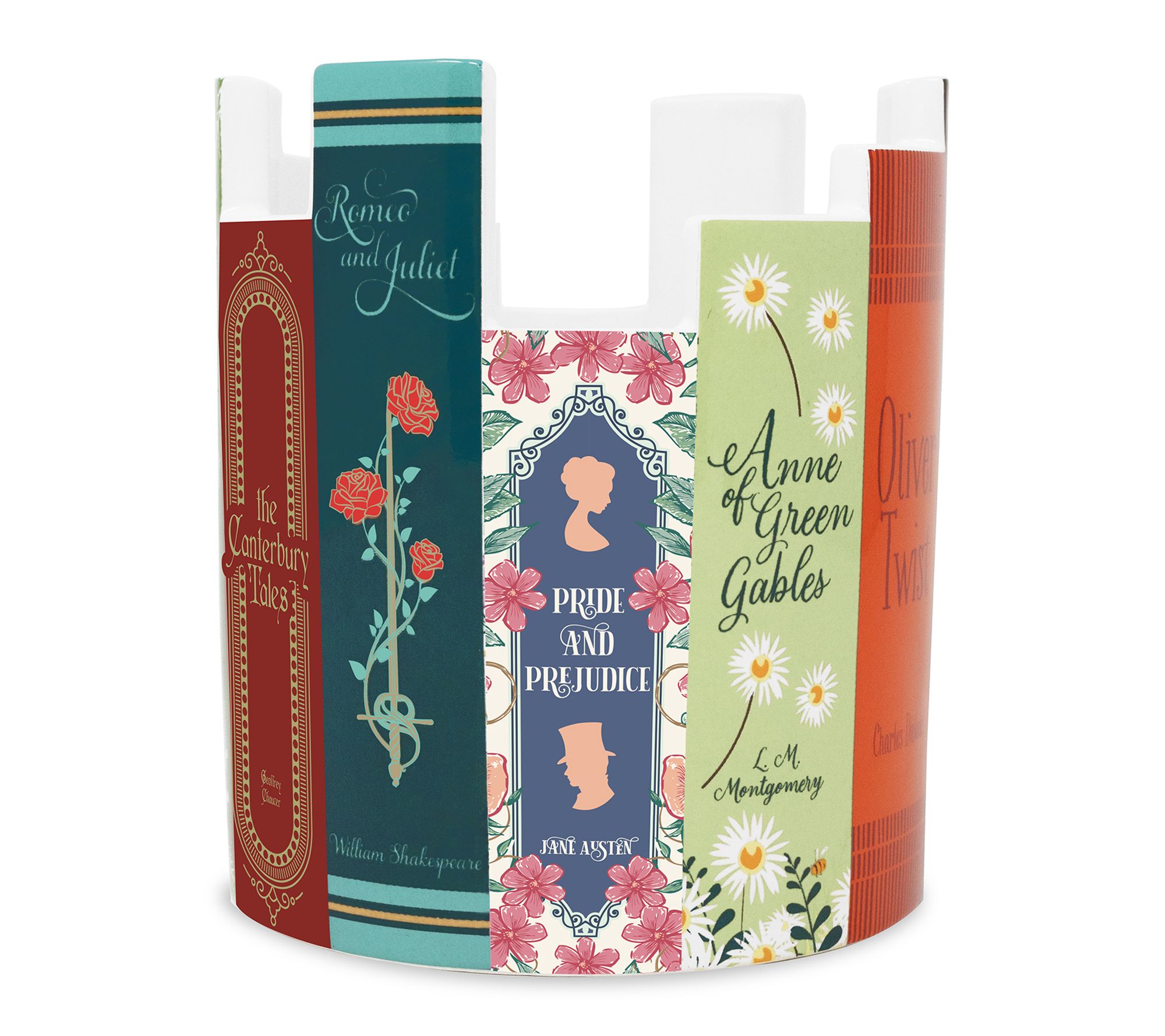 • Ceramic desk pot mimics classic book spines for a unique literary-inspired look