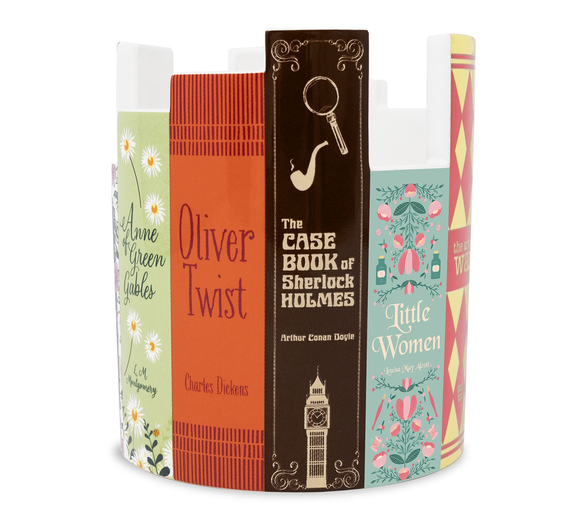 Keep your workspace tidy and inspired with this charming desk organizer. Styled to resemble a stack of classic literary spines, the ceramic desk pot brings a touch of nostalgia and personality to your office -- perfect for pens, bookmarks, or even a petite plant. Let your desk reflect your love of books while keeping essentials within easy reach. From Steel Mill Co.