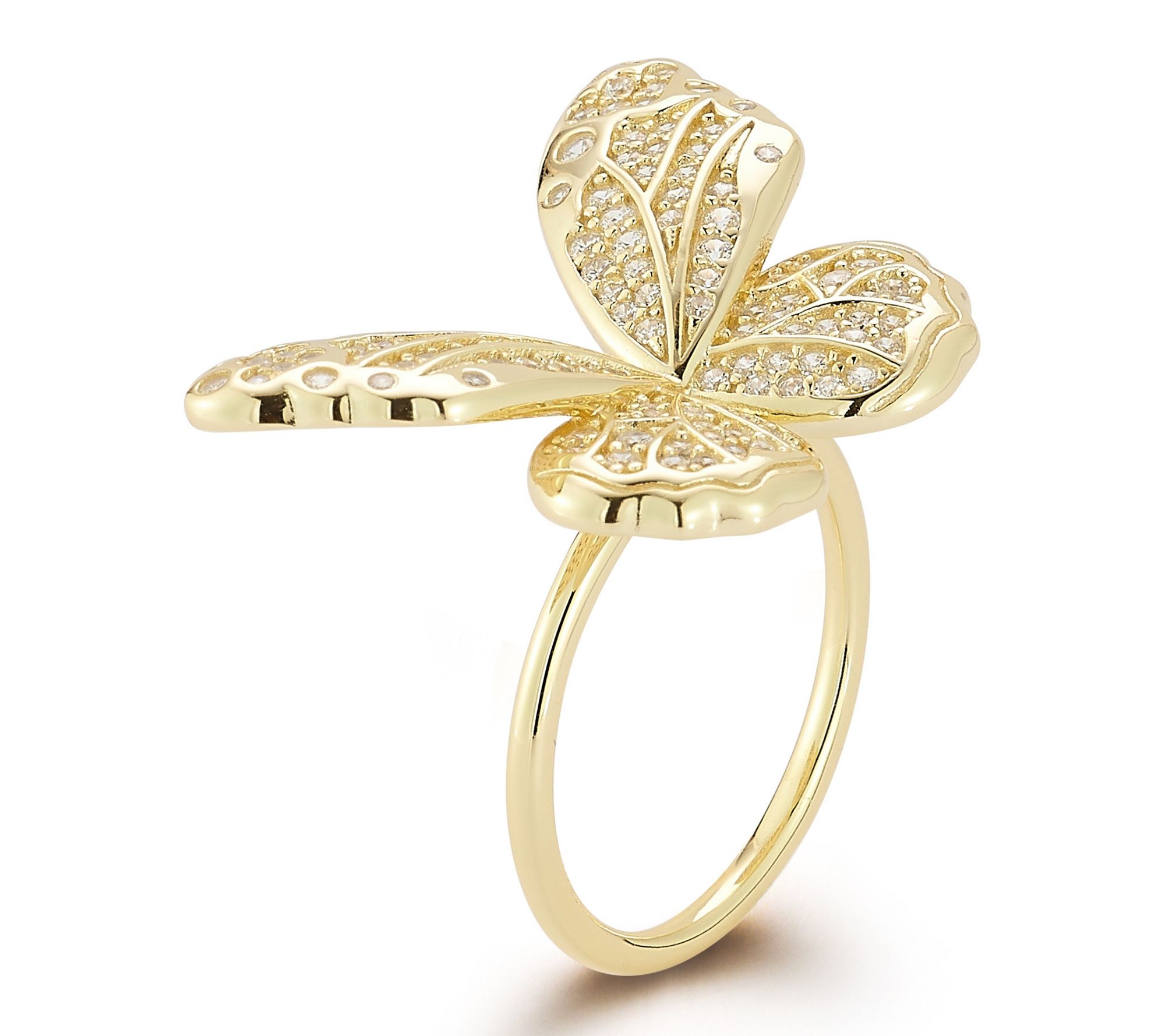 • Bold butterfly motif; round, pave-set and prong-set cubic zirconia; polished finish