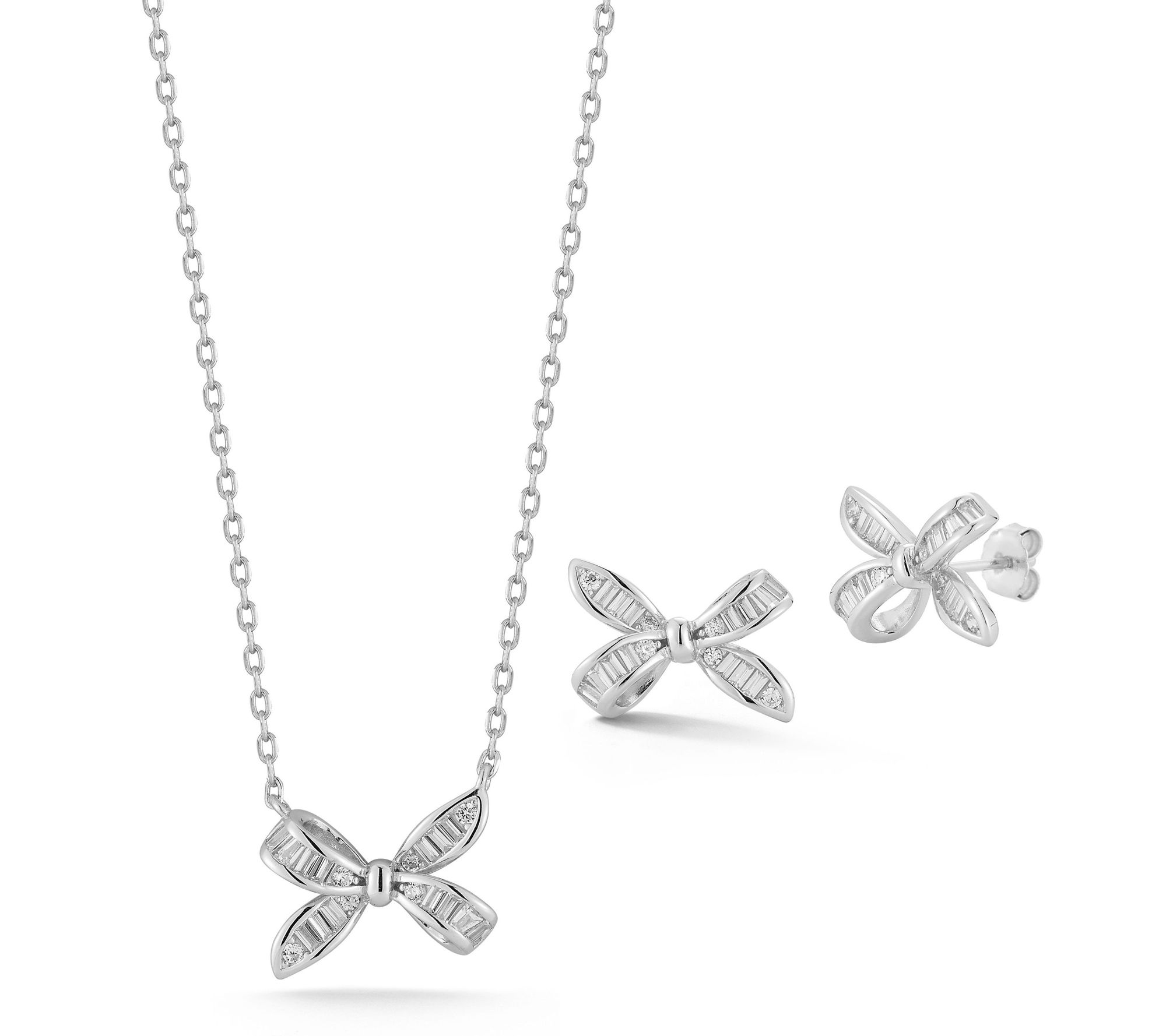 Bows never go out of style, especially when they're sparkling. This necklace and matching stud earrings set brings playful sophistication to your daily routine -- whether you're heading to brunch with friends or adding a little radiance to your workday. From Sterlina Silver.