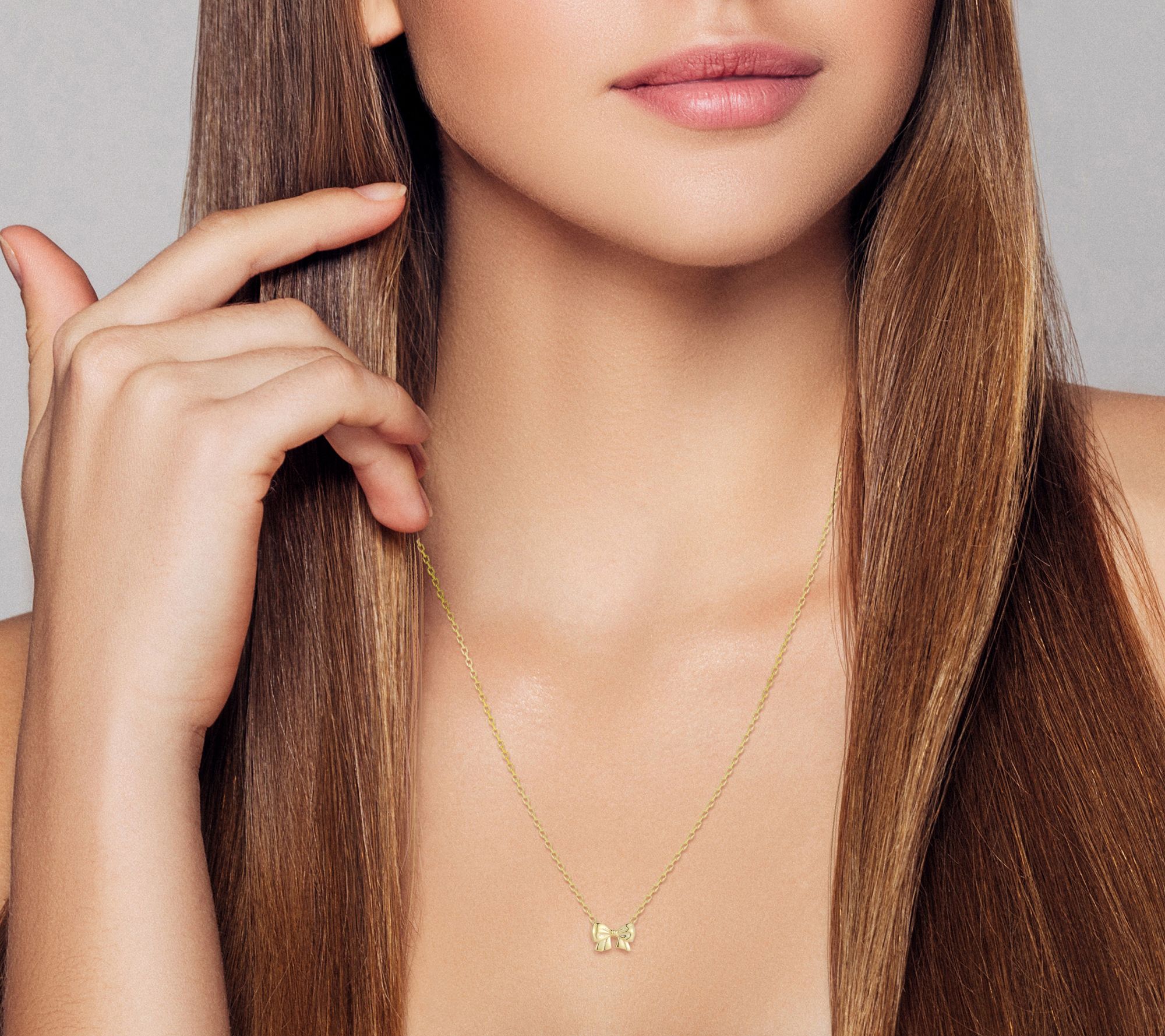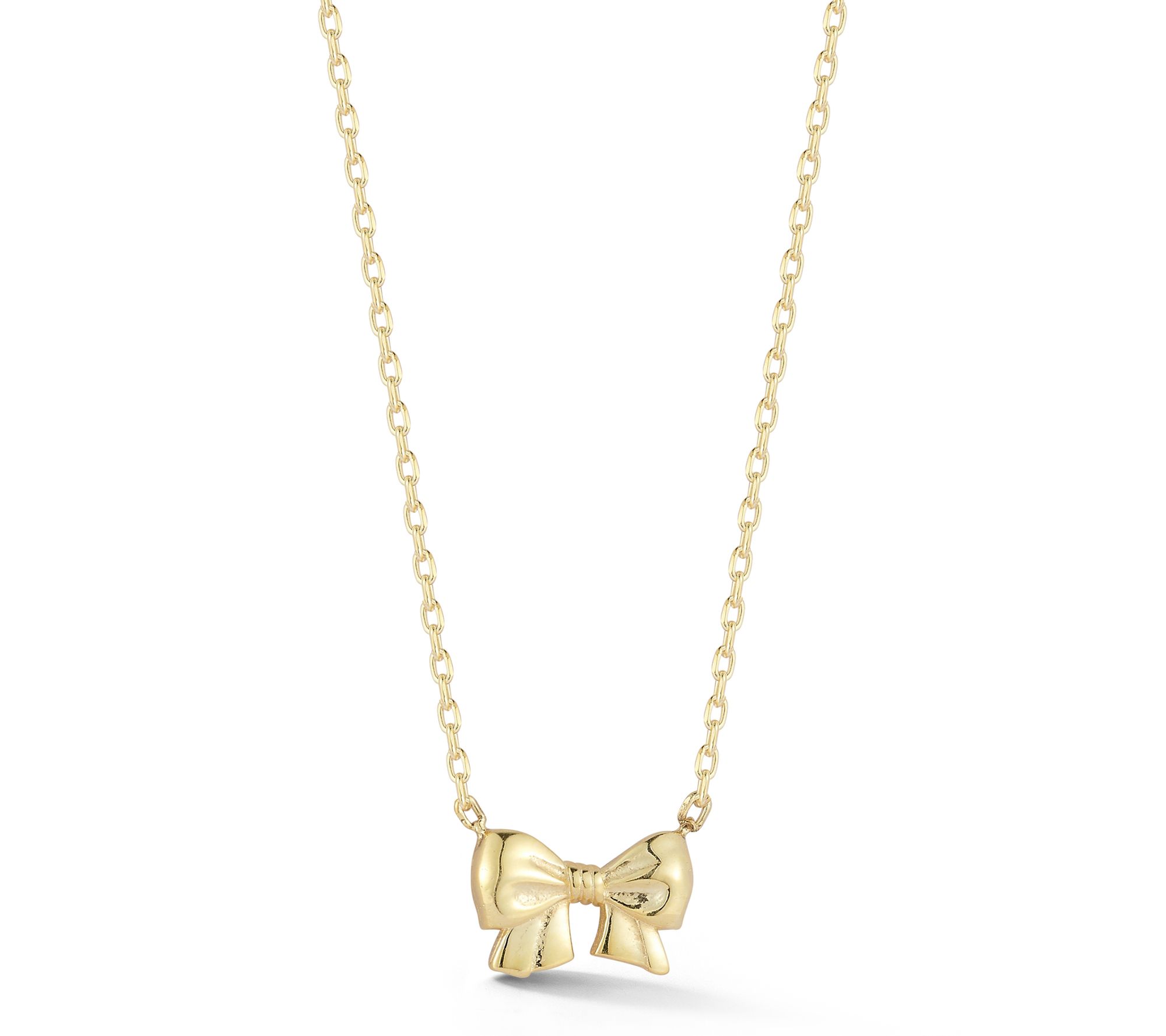 • Bow-shaped drop on delicate link chain; polished finish