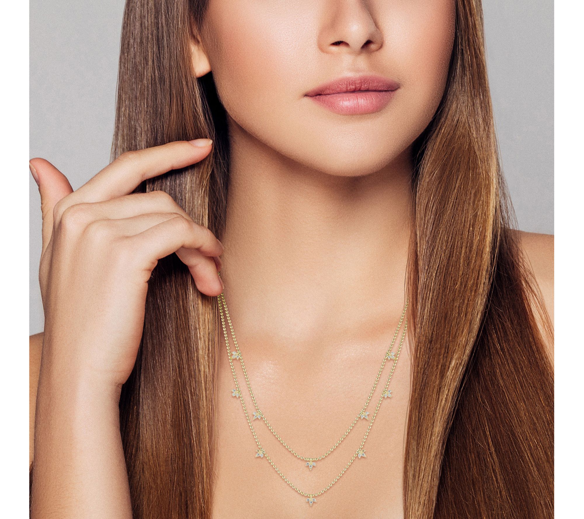 Delicate leaf charms add a whimsical flair to this double-layered necklace, making it an effortless accent for both casual tees and evening dresses. The layered bead chains shimmer with either 14K yellow gold-plated or rhodium-plated sterling silver, while sparkling cubic zirconia stones provide a touch of dazzle. From Sterlina Silver.