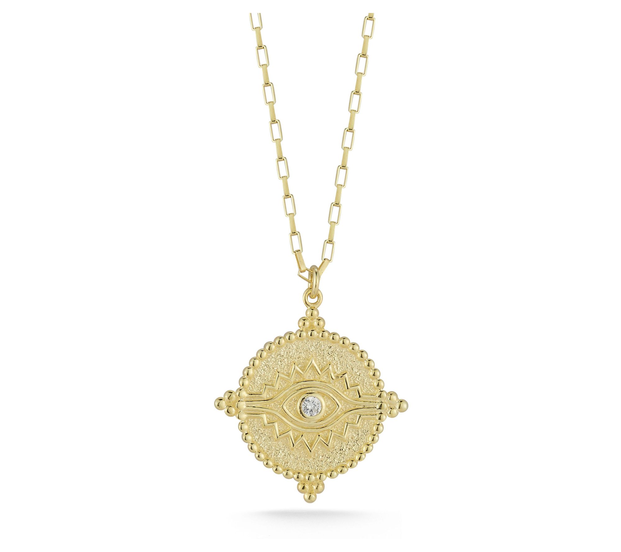 • Features an evil eye medallion with a beaded design on an oval link chain