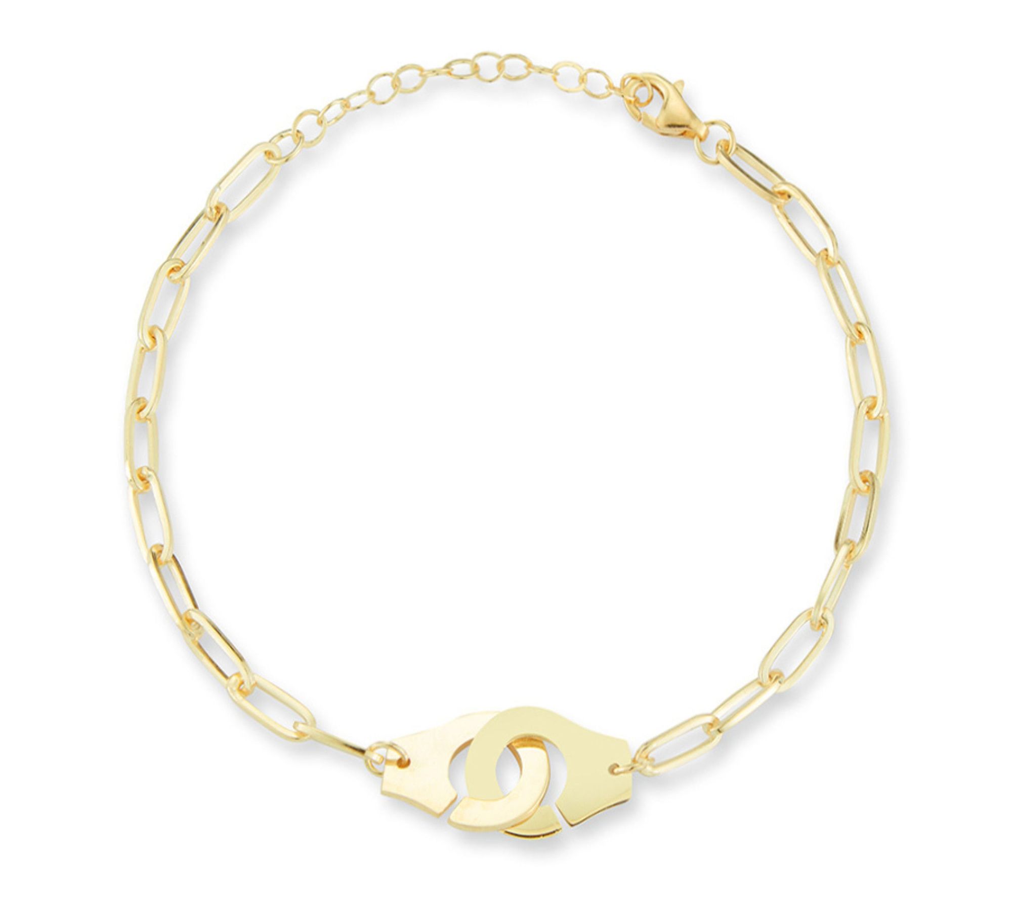 Celebrate your individuality with this anklet, featuring a bold handcuff design at the center for a trendy finishing touch. Whether you're dressing up summer sandals or embracing laid-back style, the paperclip chain brings a fun twist to any look. From Sterlina Silver.