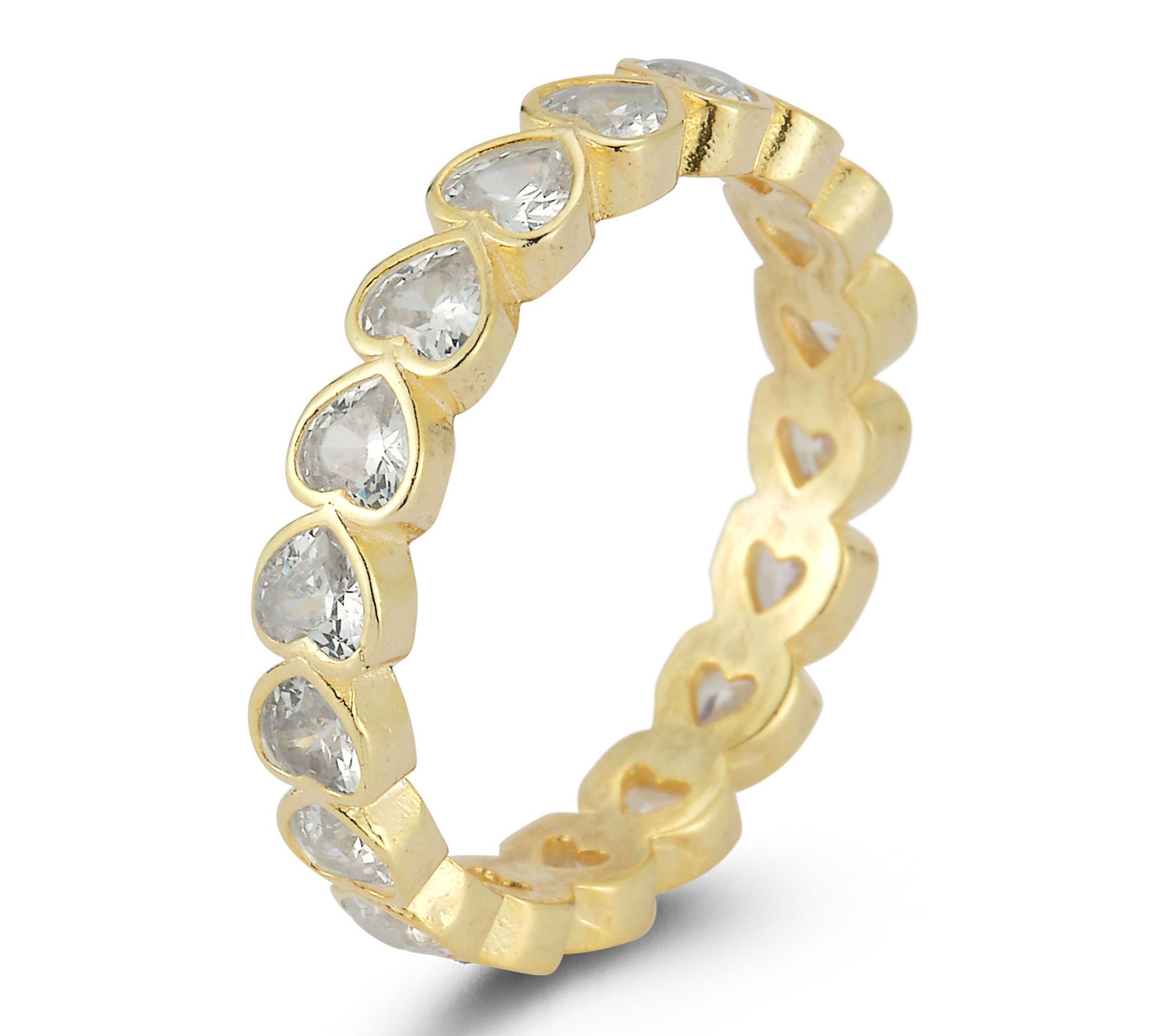 Bezel-set, heart-shaped cubic zirconia; eternity style band
