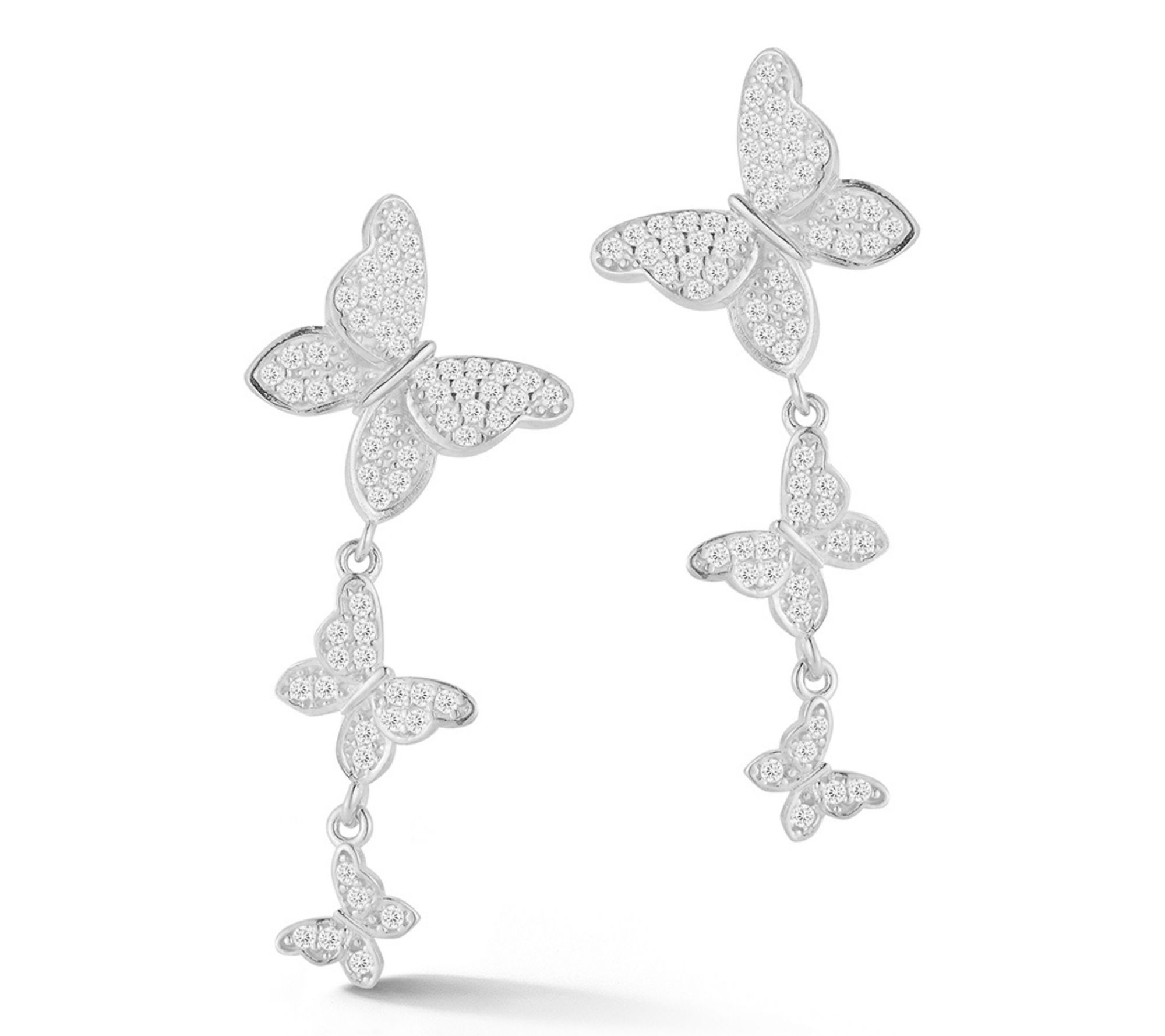 Sterlina Silver Pave Butterfly Chain Drop Earrings, Sterling