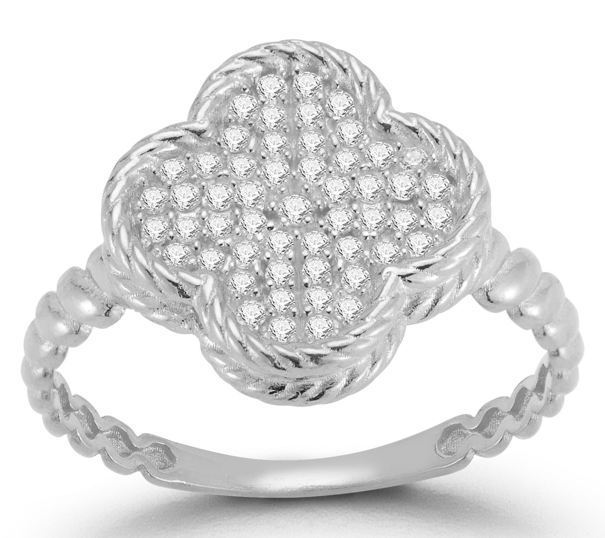 Sterlina Silver Pave Clover Twist Ring, Sterling