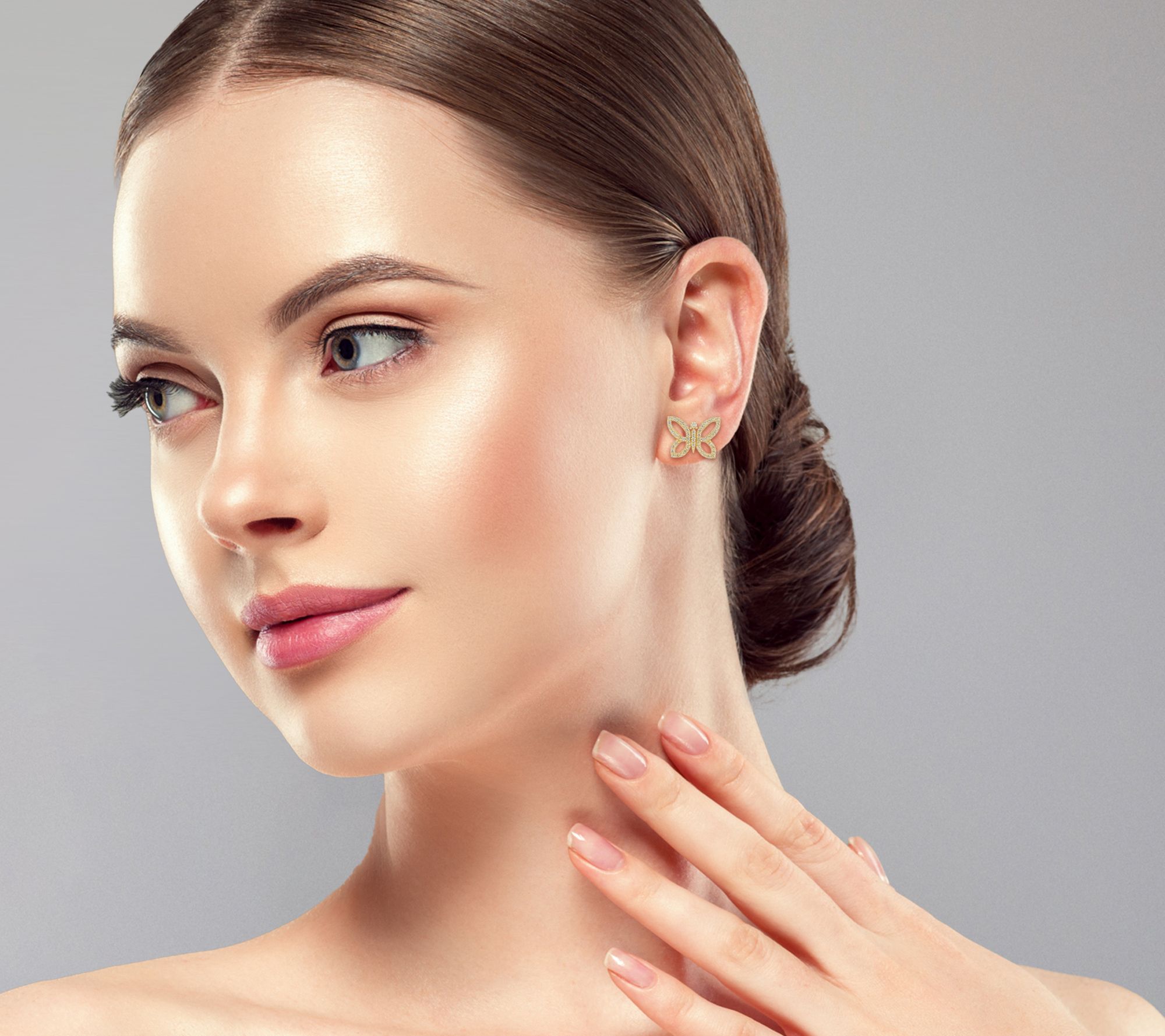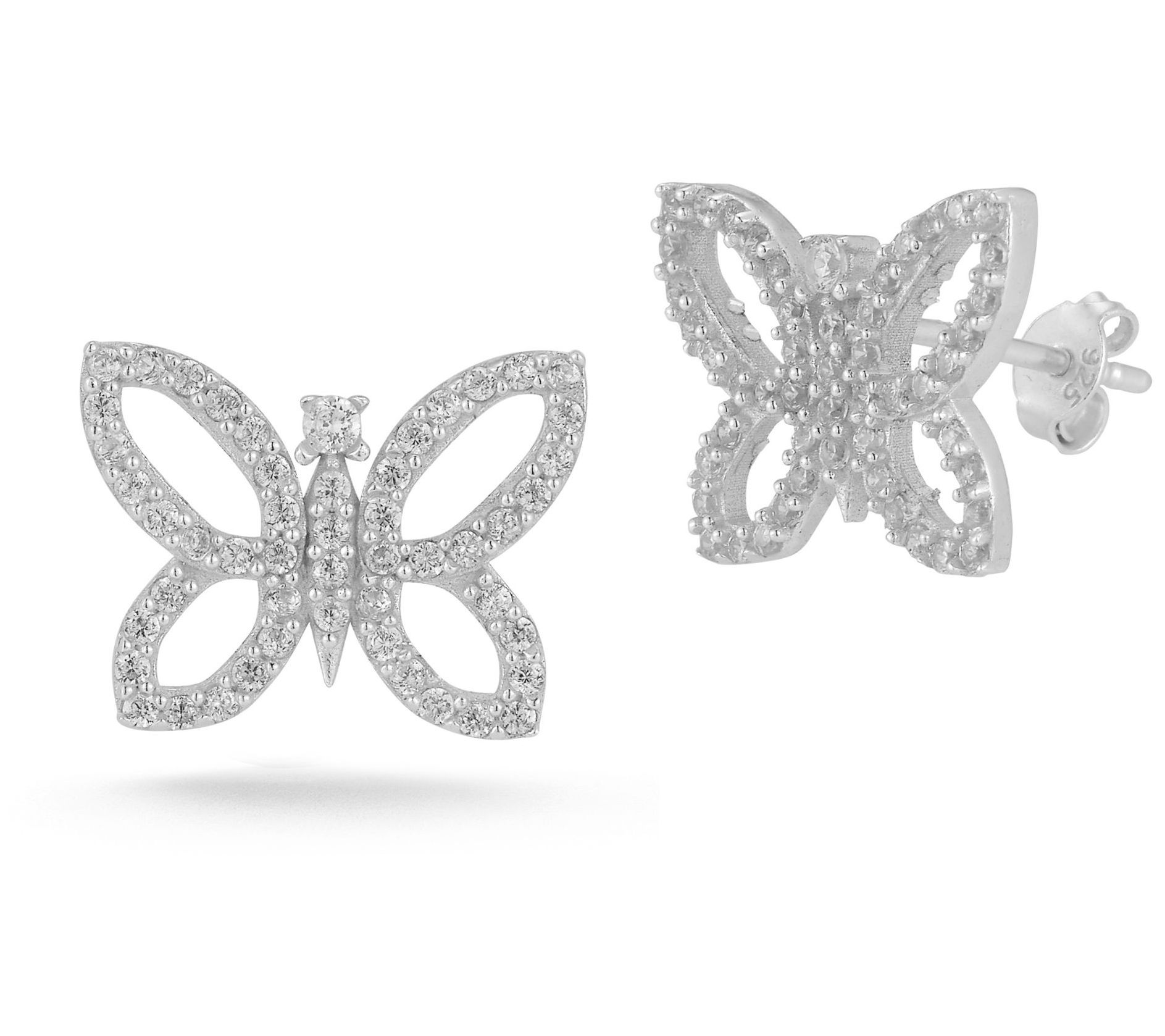 • Open-work butterfly stud earrings with round-cut, prong-set cubic zirconia stones