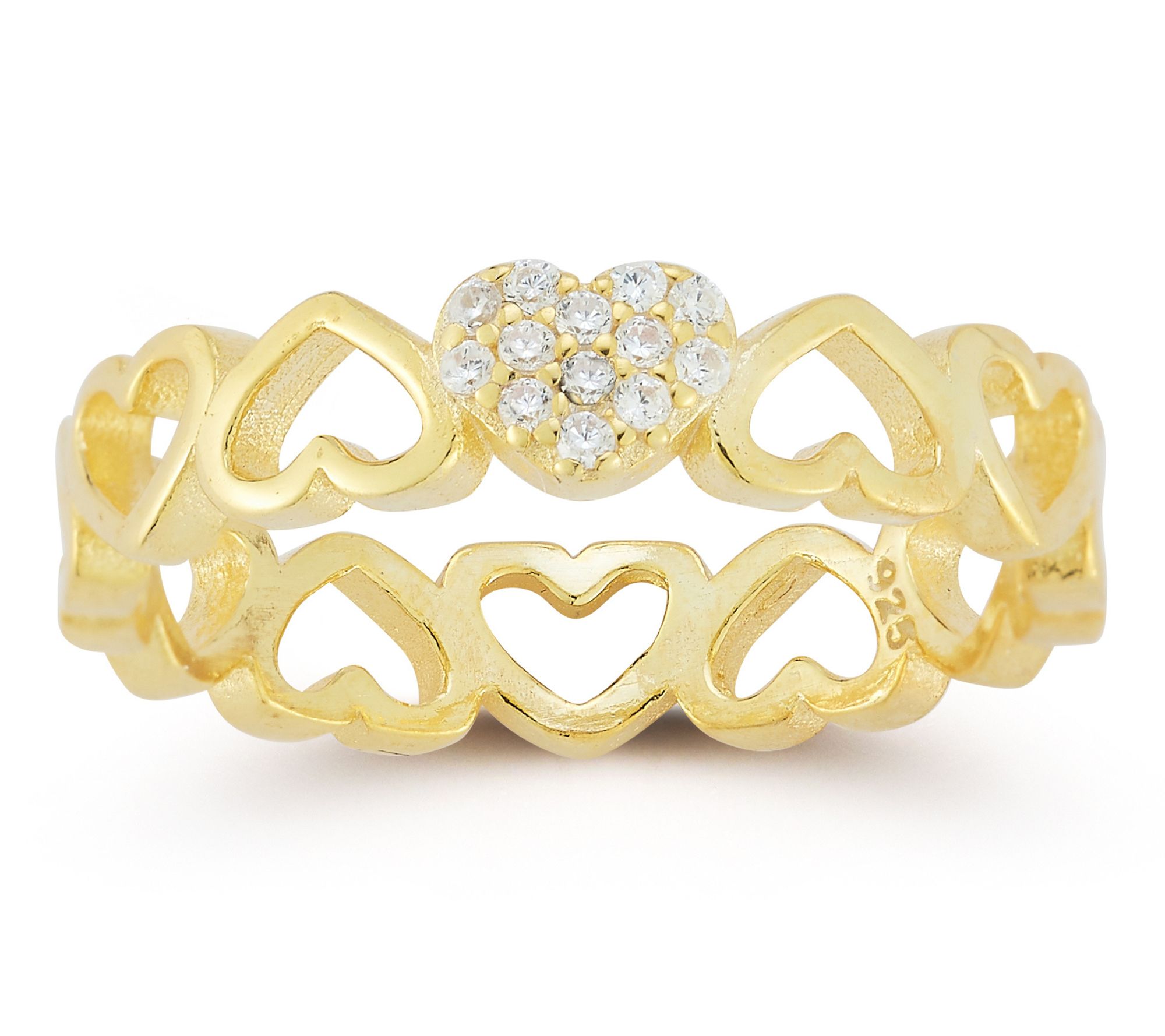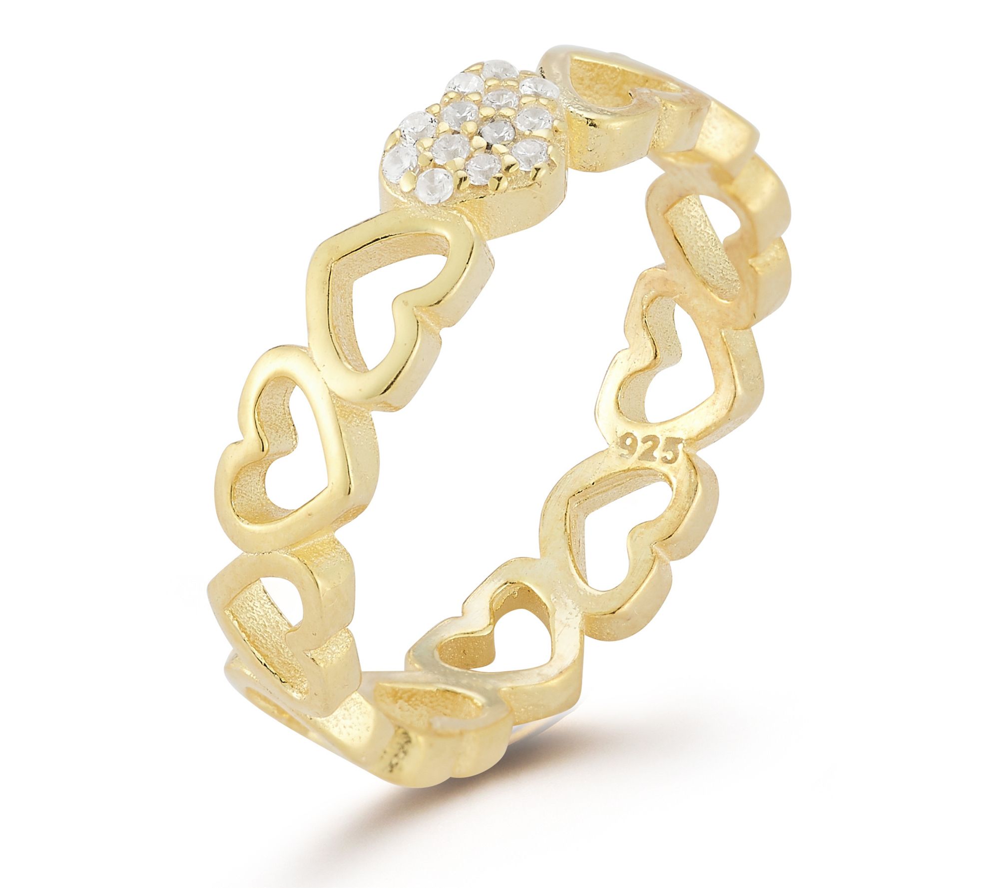 Openwork heart band design; heart design with round-cut cubic zirconia