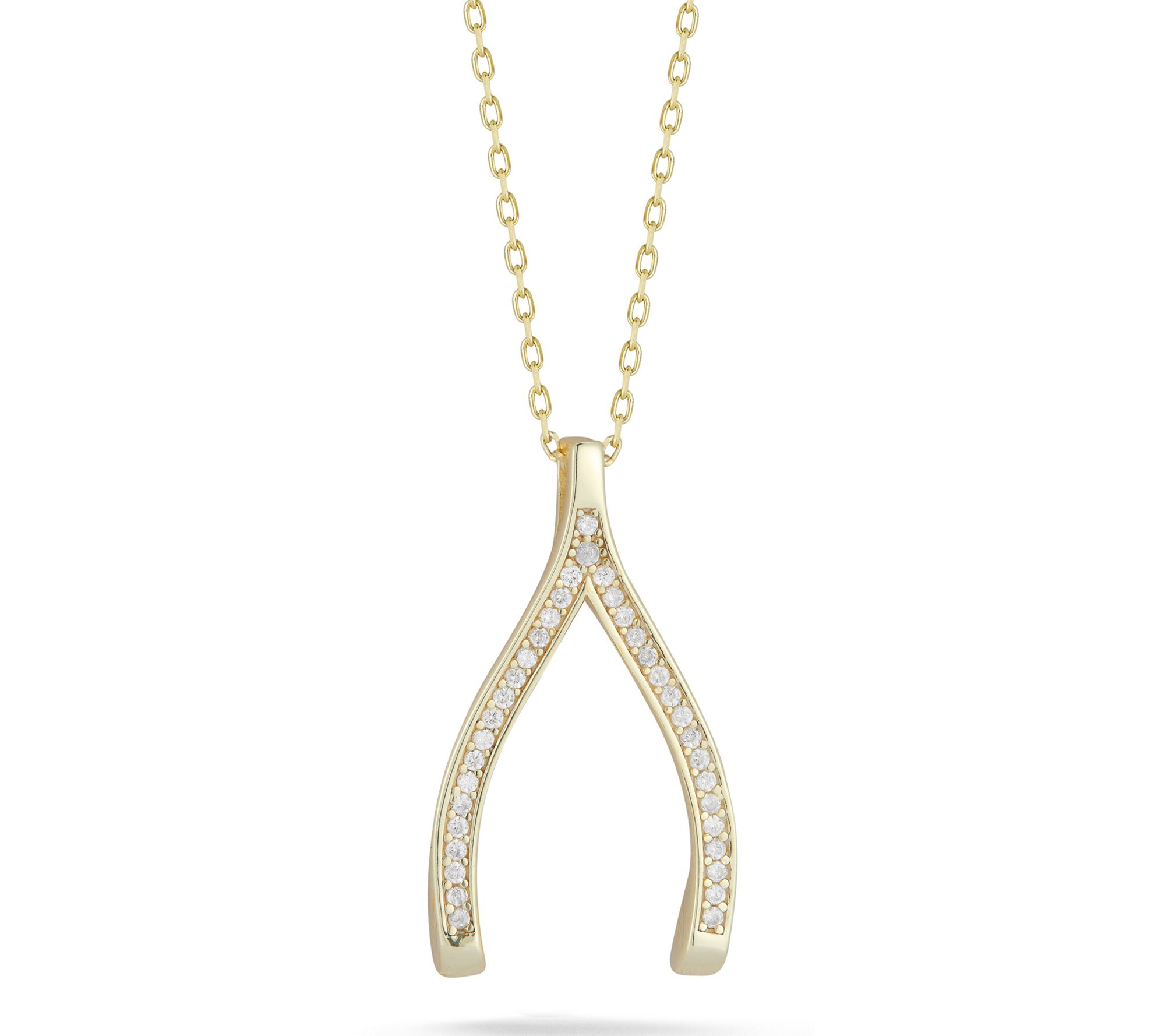 Good fortune and sparkle come together in this pave wishbone necklace, pairing meaningful style with a touch of shimmer for everyday inspiration. Twinkling cubic zirconia add brilliance to your look whether worn solo or layered with other favorites, making each day feel a little more special. From Sterlina Silver.