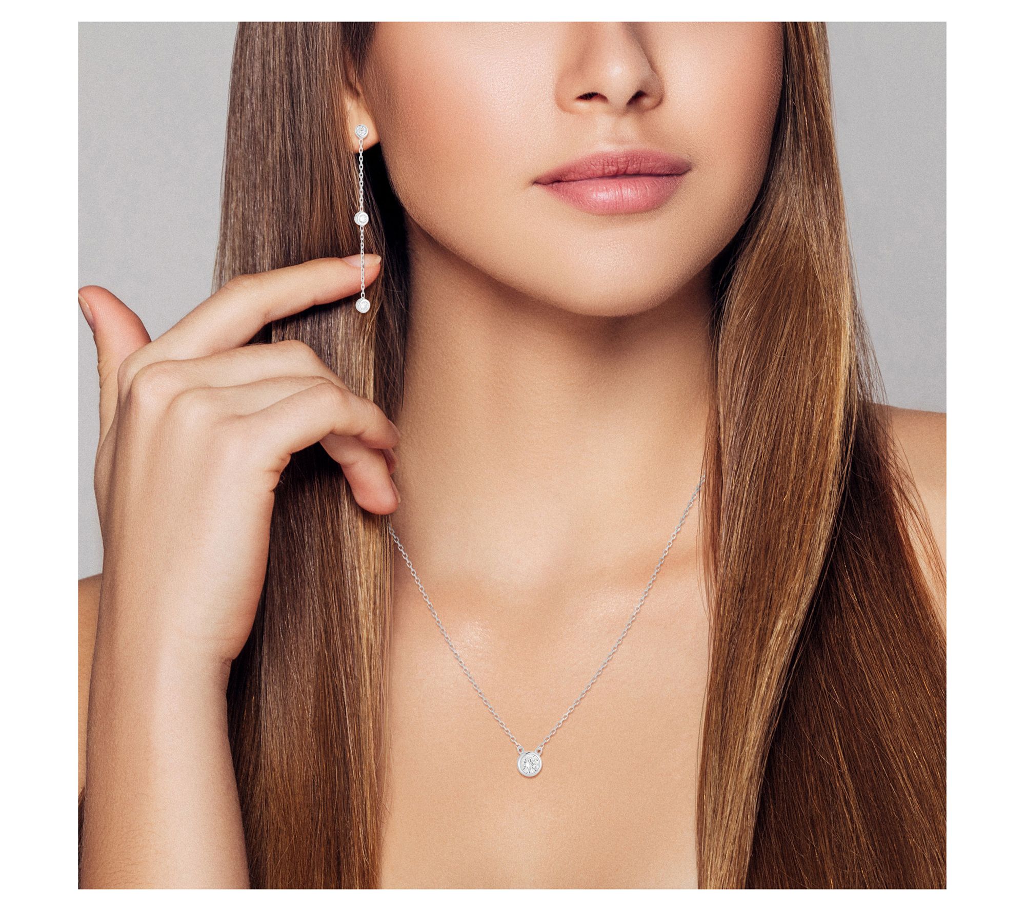Planning brunch with friends or dressing up for a night on the town, this versatile set brings effortless shine to any outfit. The solitaire necklace and matching dangle earrings pair beautifully for both casual and more polished occasions. Mix, match, or wear together for a look that feels pulled together, every time. From Sterlina Silver.