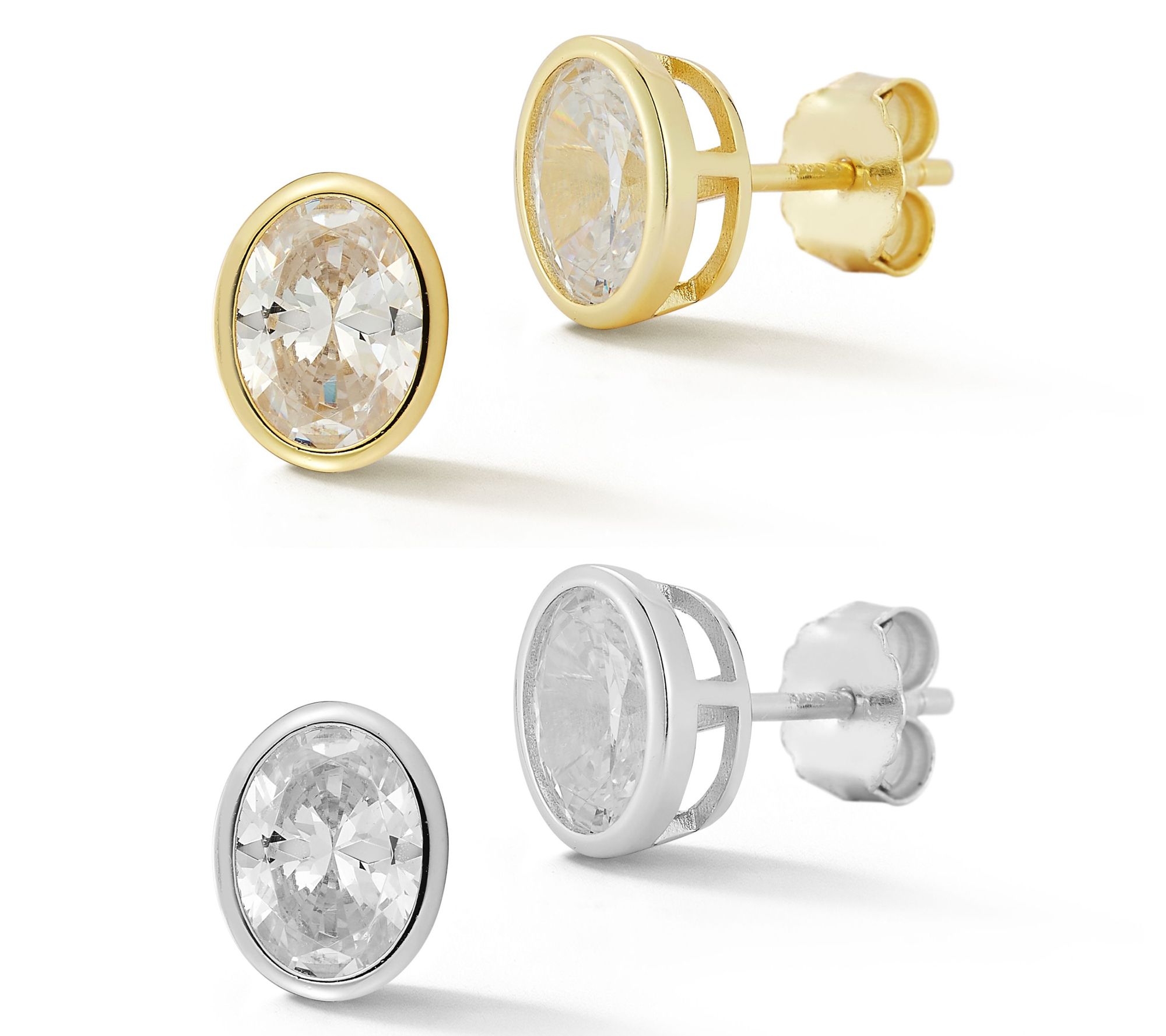 • Stud design; oval-cut, bezel-set cubic zirconia