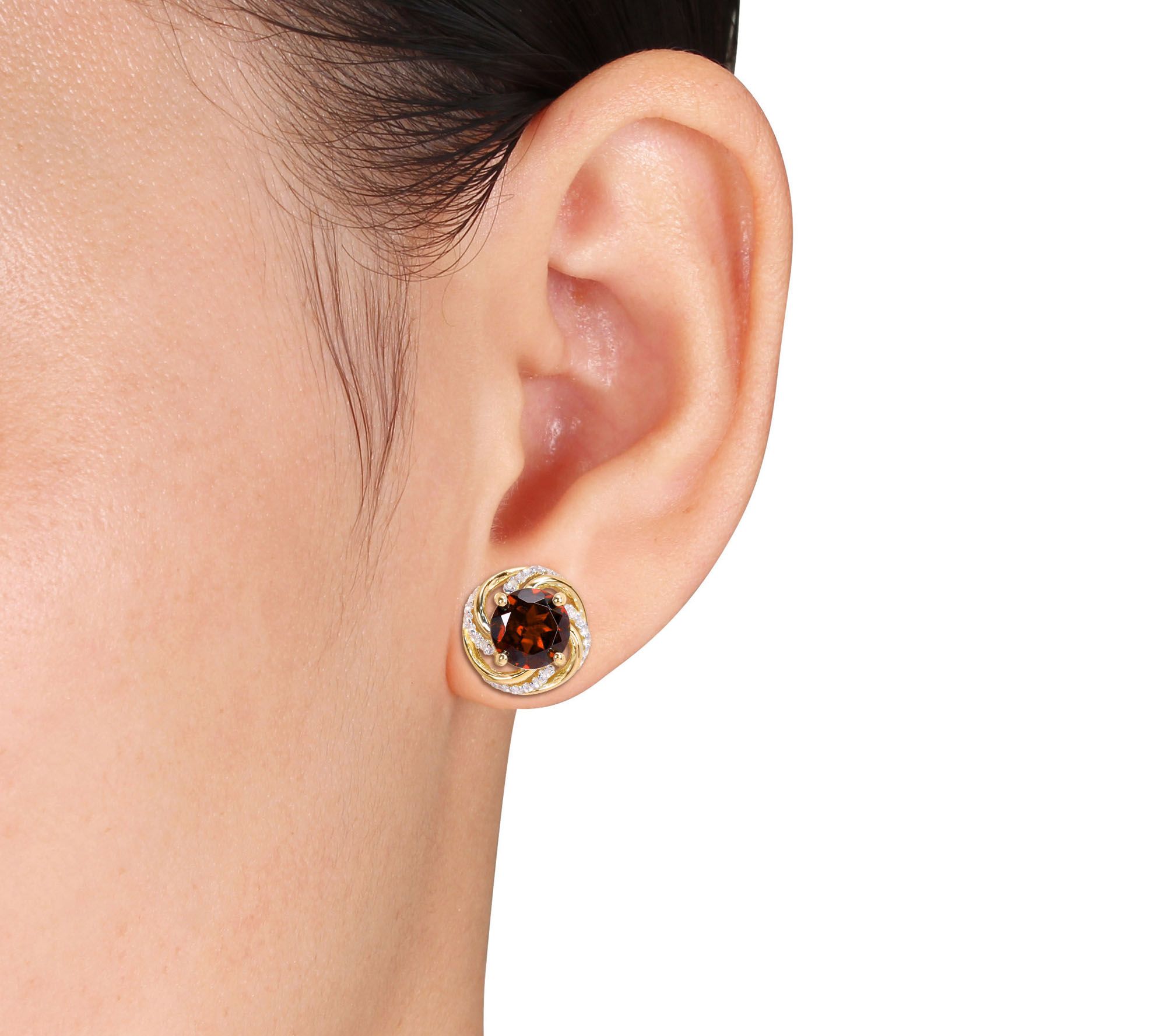 Set in 14K yellow gold-plated sterling silver, these garnet and white topaz stud earrings are nothing less than stellar.