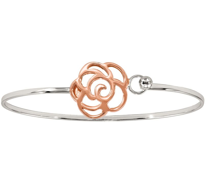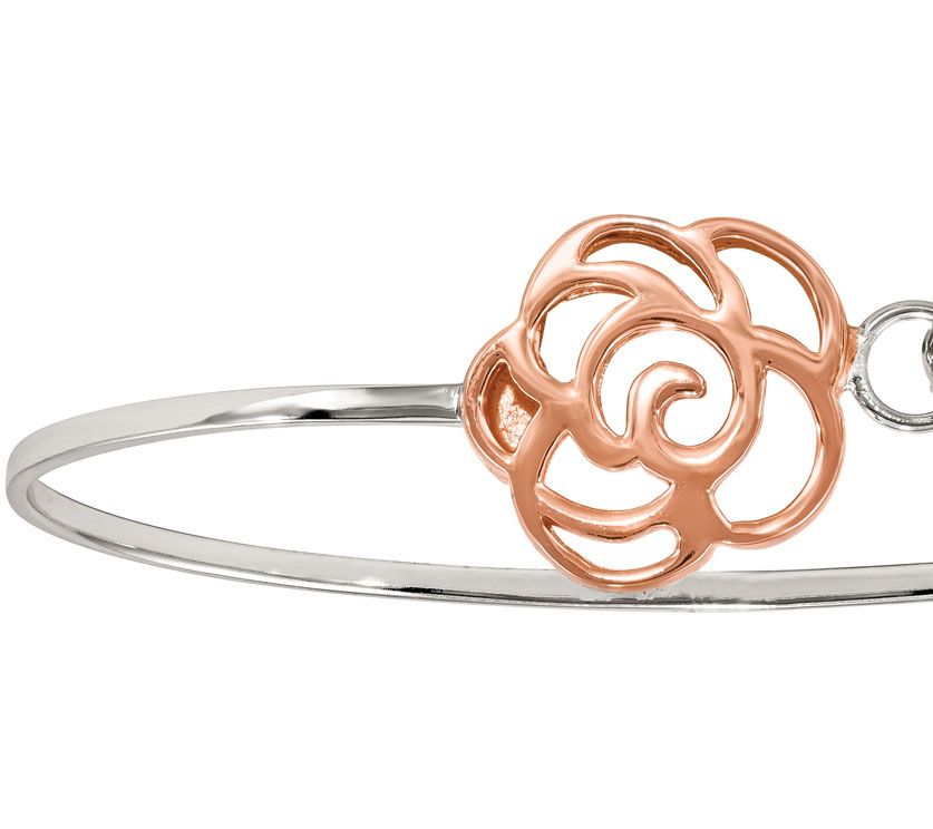 Sterling & 14K Rose Gold-Plated Flower Bangle by Silver Style