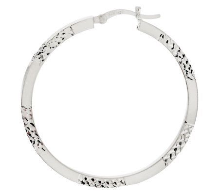 Sterling 1-1/2" Polished Diamond Cut Hoop Earrings