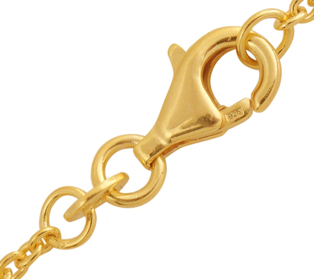 • Polished rolo-link chain with a hamsa pendant outlined in round, white topaz gemstones; white topaz and tanzanite gemstones make up the eye