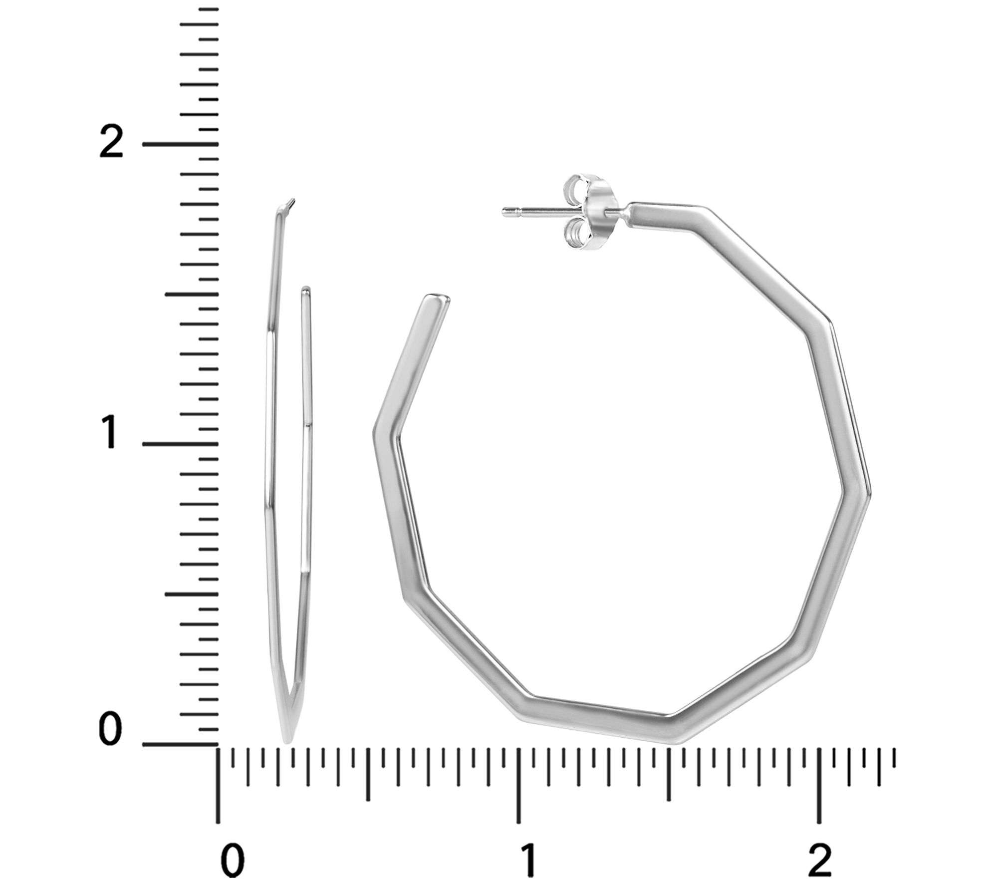 Sterling Silver 1-1/2" Octagon Hoop Earrings