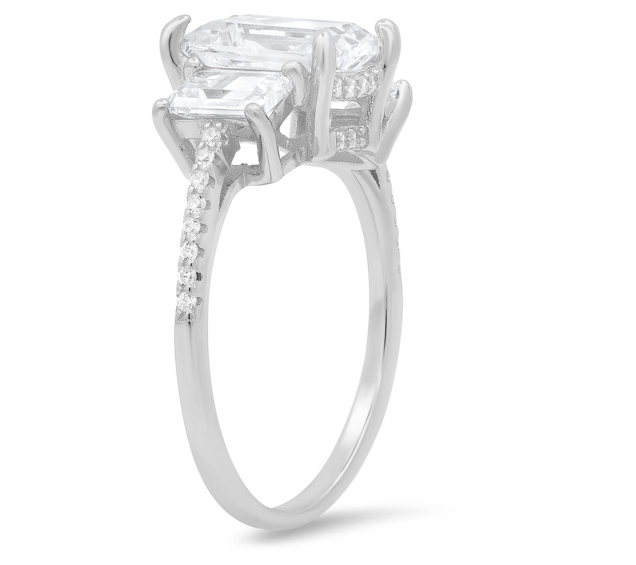 Sterling Silver 3-Stone Simulated Diamond Ring