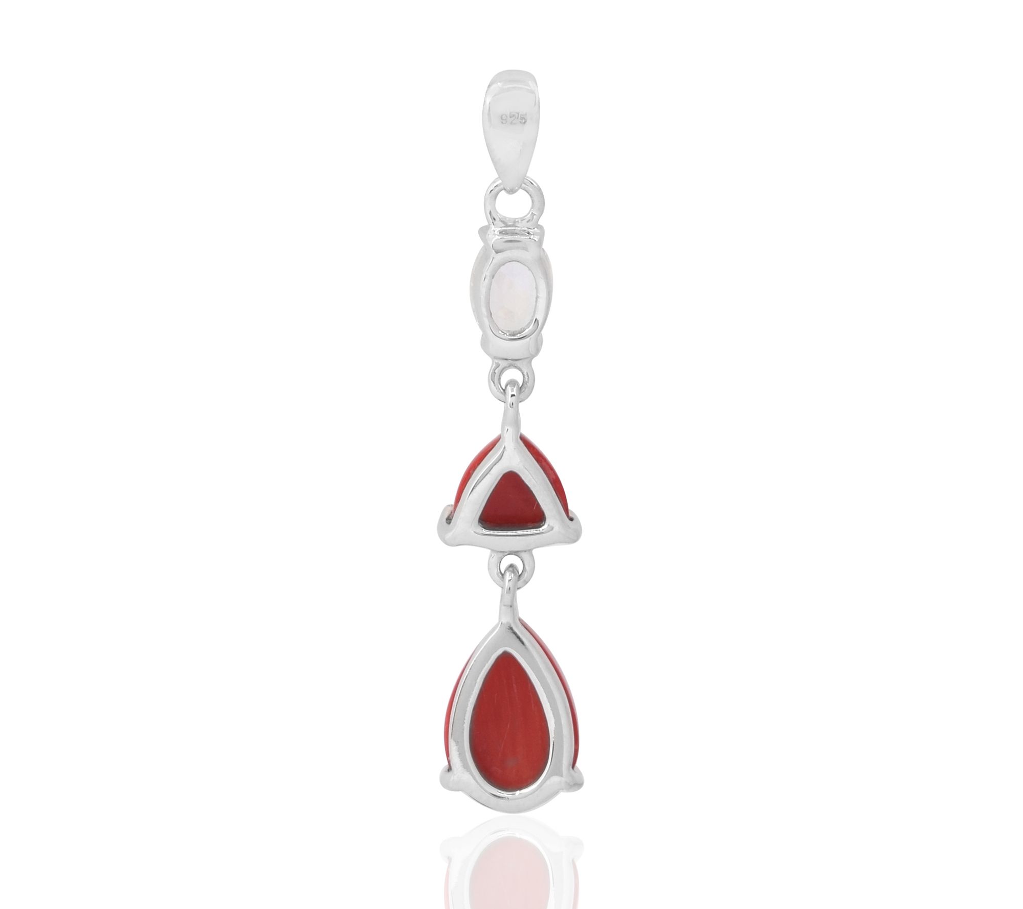 • Drop design with red bamboo corals and white topaz at top
