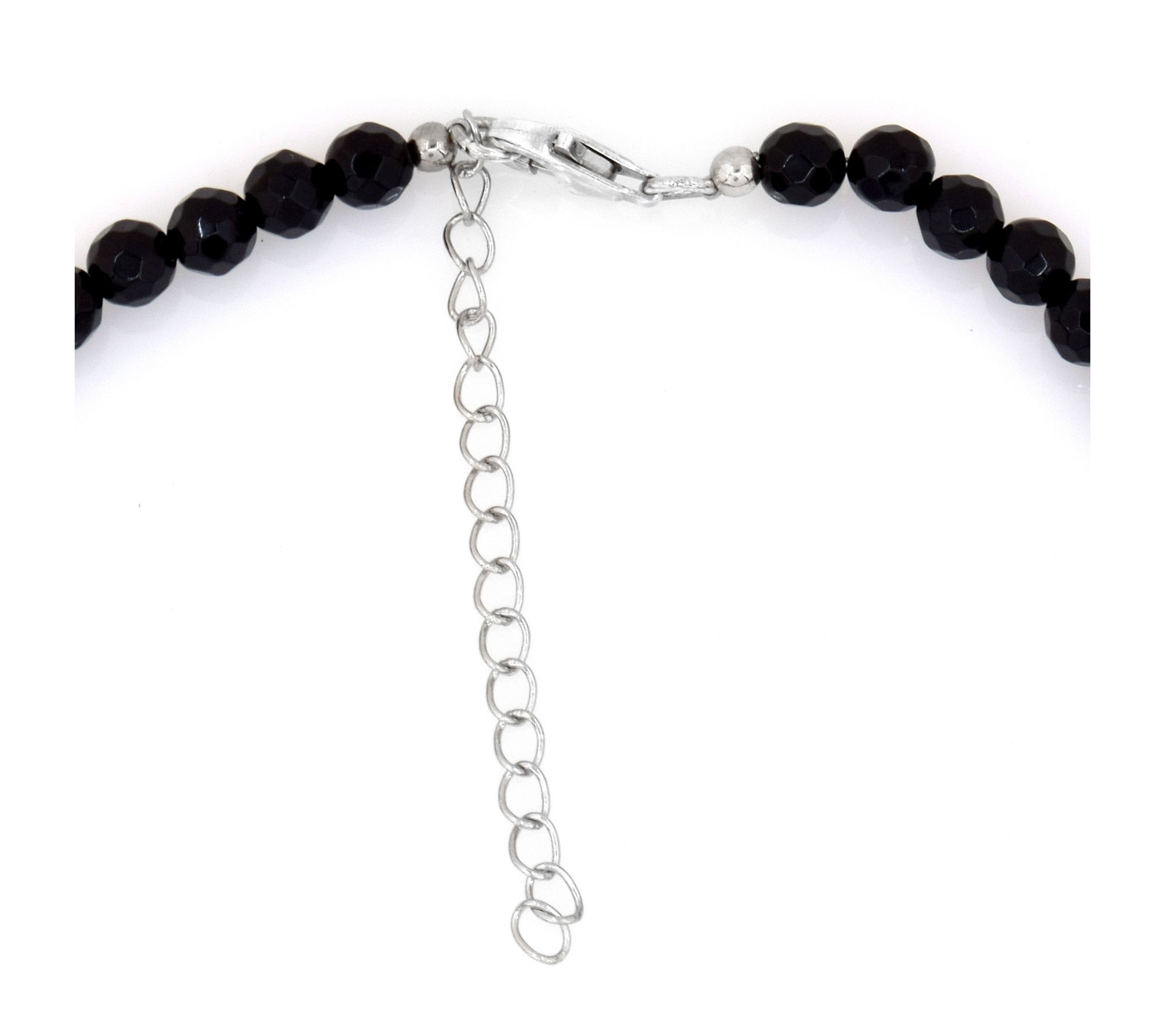 Whether you're dressing up for a night out or adding a sophisticated touch to your work attire, this sterling silver necklace adorned with black chalcedony beads brings elegance to any occasion. The contrasting black faceted beads and platinum plating offer a striking look that is as versatile as it is stunning.
