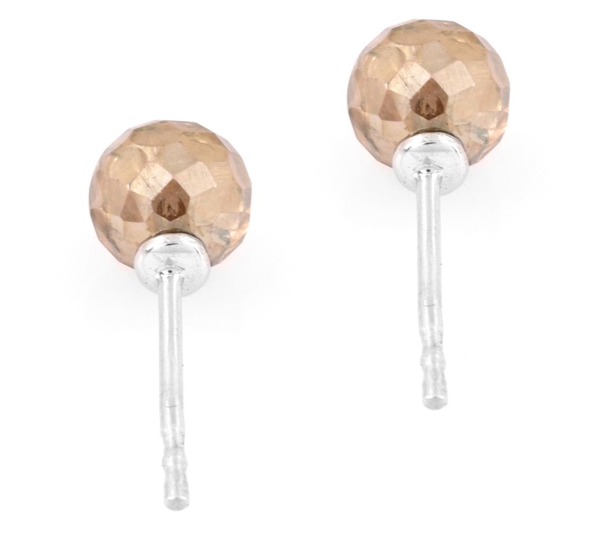 • Stud earrings with round, faceted champagne-coated quartz beads
