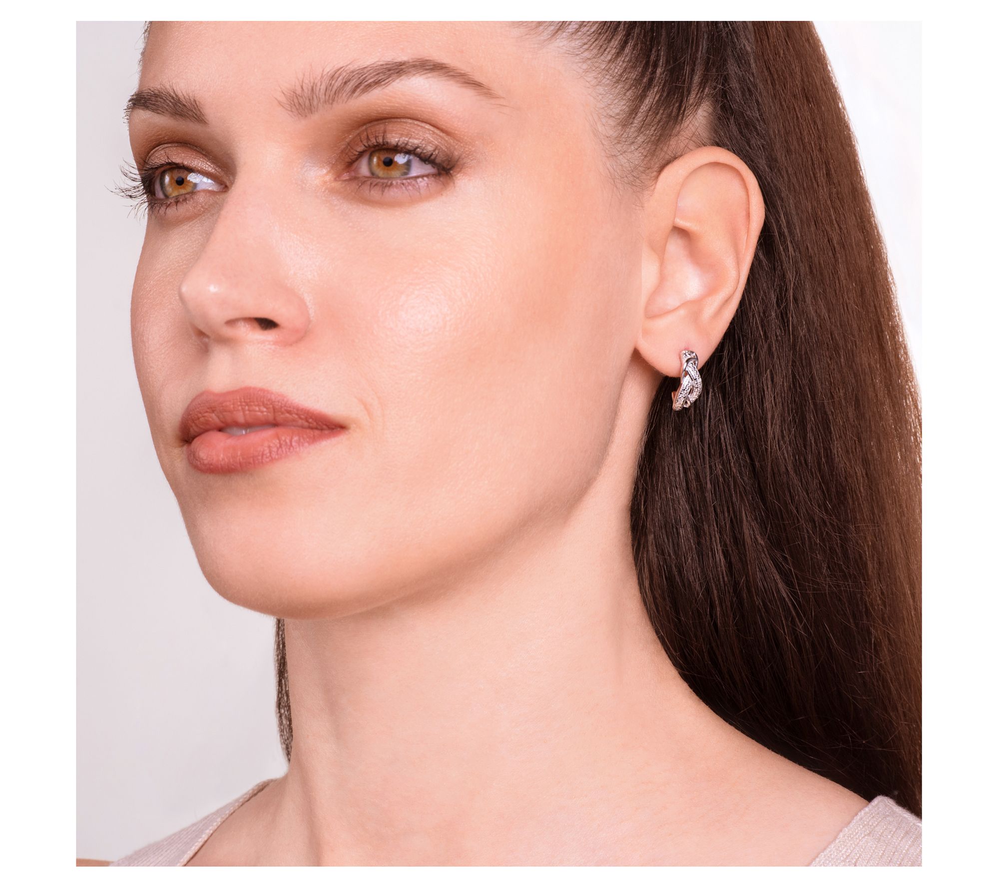 Add a touch of elegance to your everyday look with these braided hoop earrings. Crafted with rhodium-plated sterling silver and featuring a delicate pave setting, these earrings are accented with diamonds to bring a subtle sparkle to your ensemble.