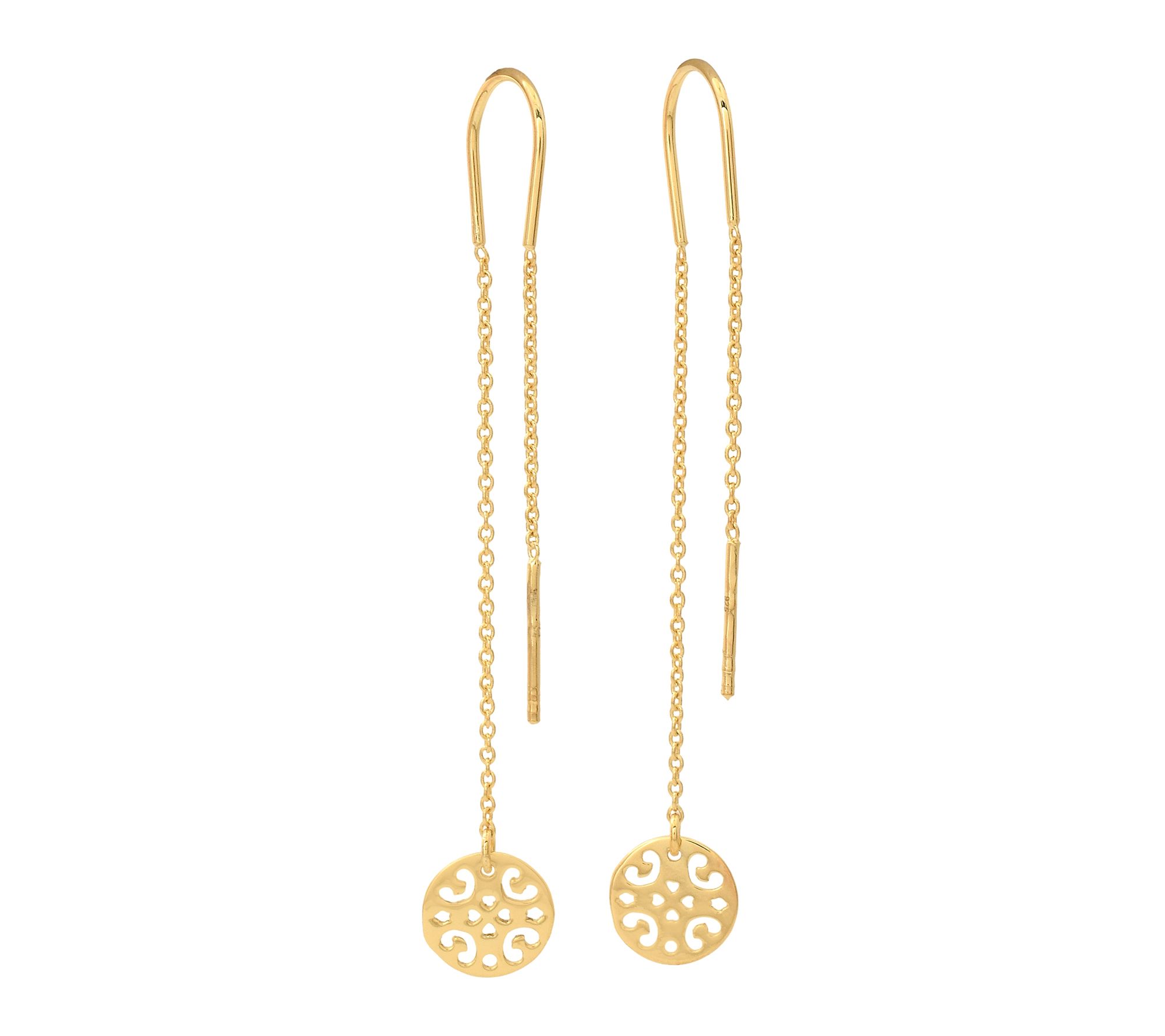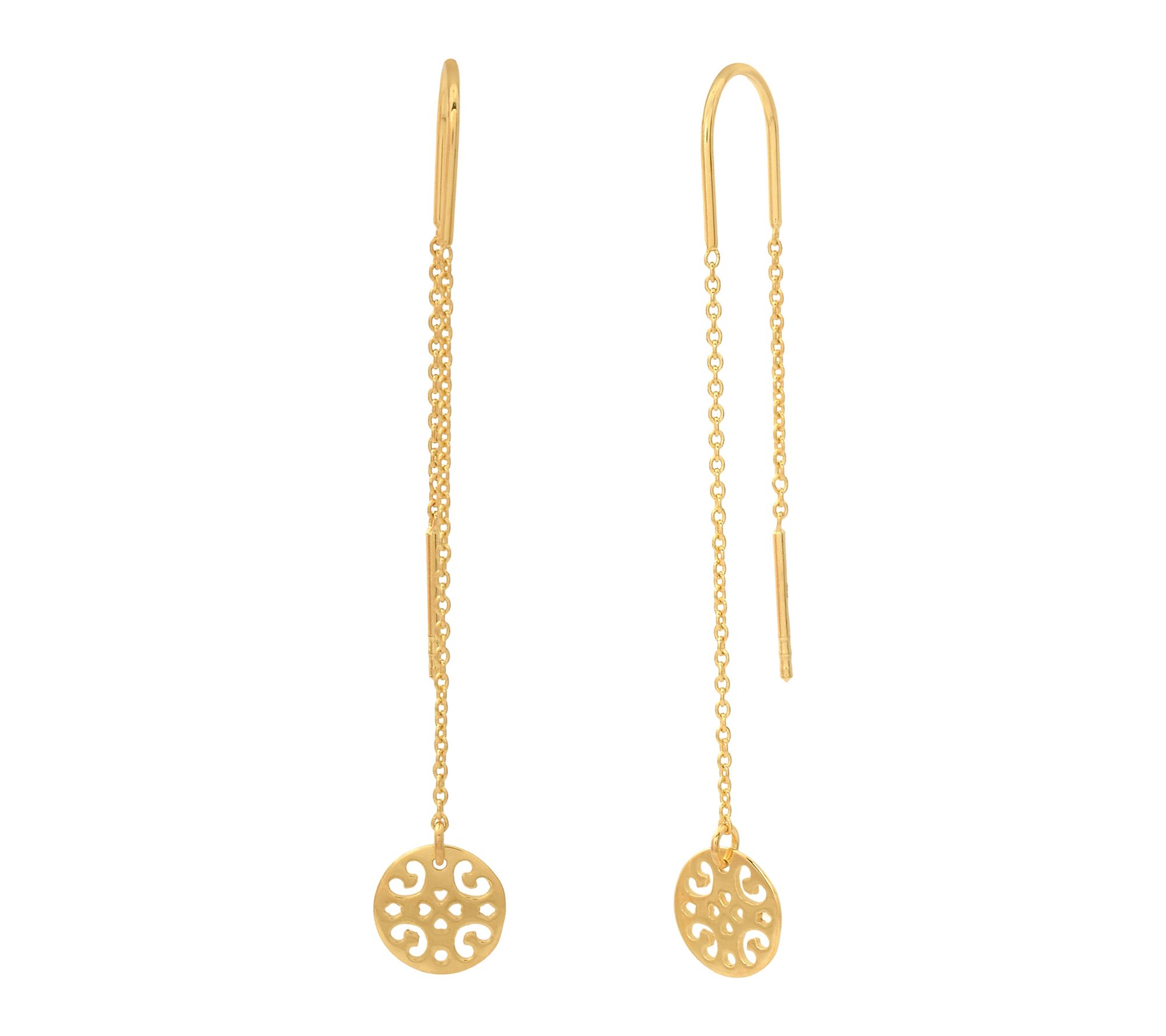 Slip on these disc charm threader earrings to bring a modern, effortless touch to your favorite outfits. The sleek oval link chain creates eye-catching movement as you go about your day or enjoy a night out.
