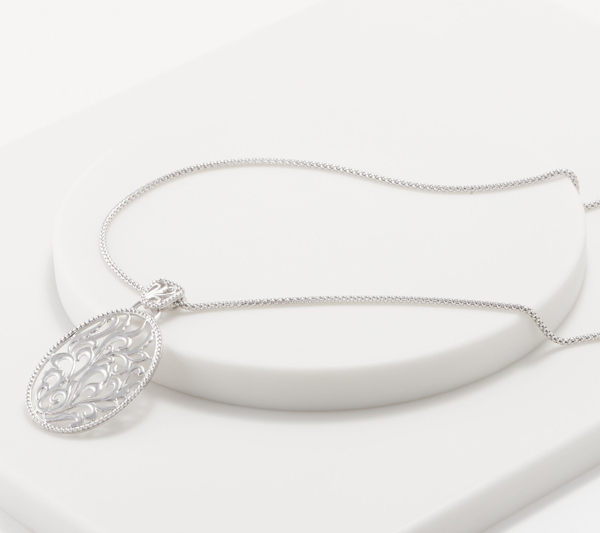 With a classic design that'll never go out of style, this fetching filigree pendant is a piece you'll turn to time after time, no matter the occasion. From Silver Style®.