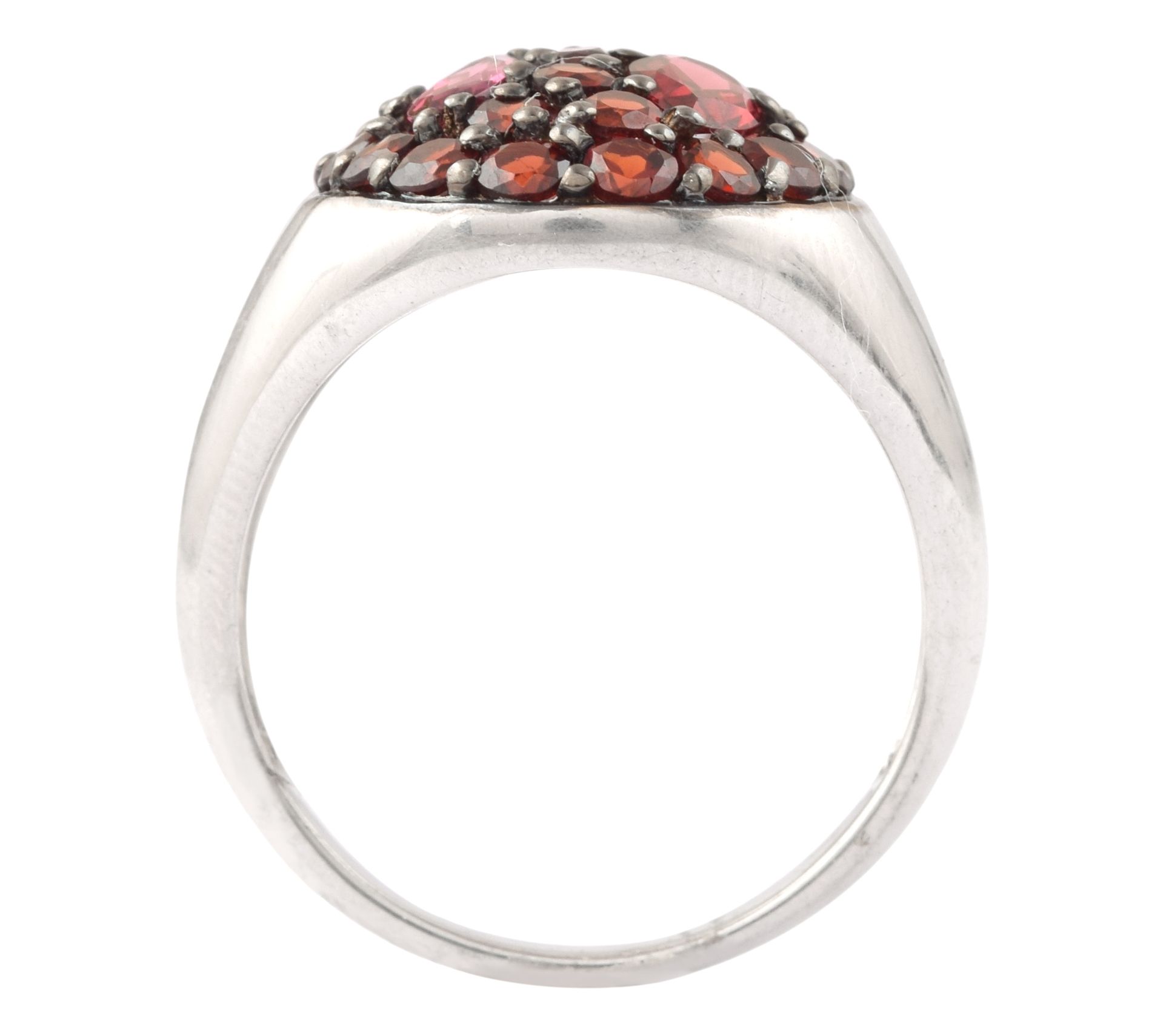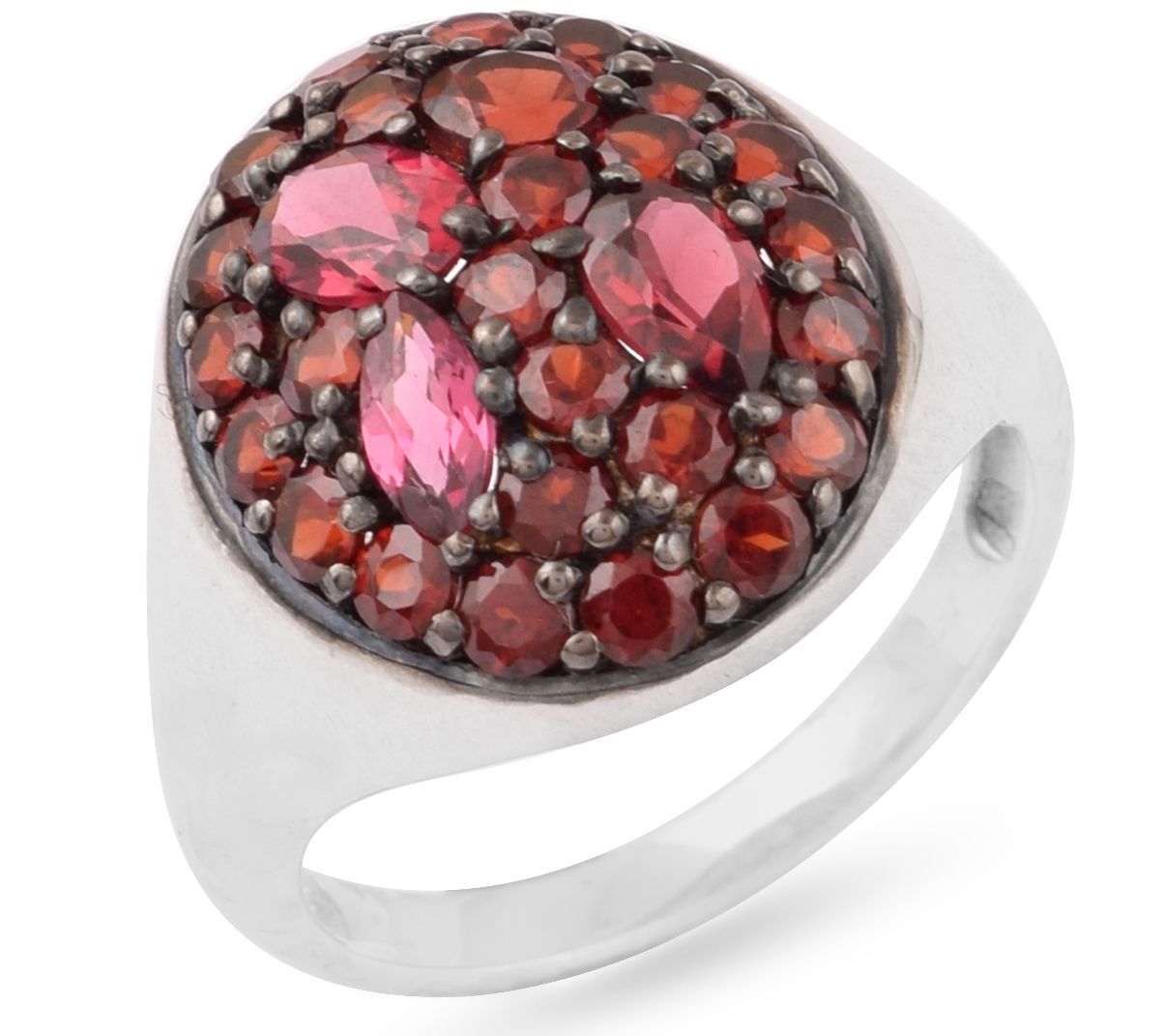 Brilliant garnet and rhodolite gemstones cluster together to shape this stunning ring -- a fanciful addition to your jewelry wardrobe.