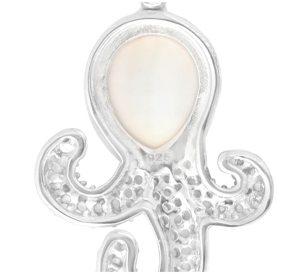 • Octopus motif with pear-cut bezel-set shell and round-cut prong-set white topaz