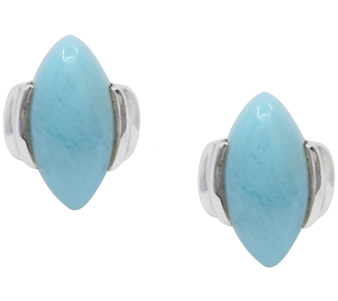 Not your standard studs, these half-bezel larimar earrings conjure up the cool blue bliss of a day spent by the ocean.