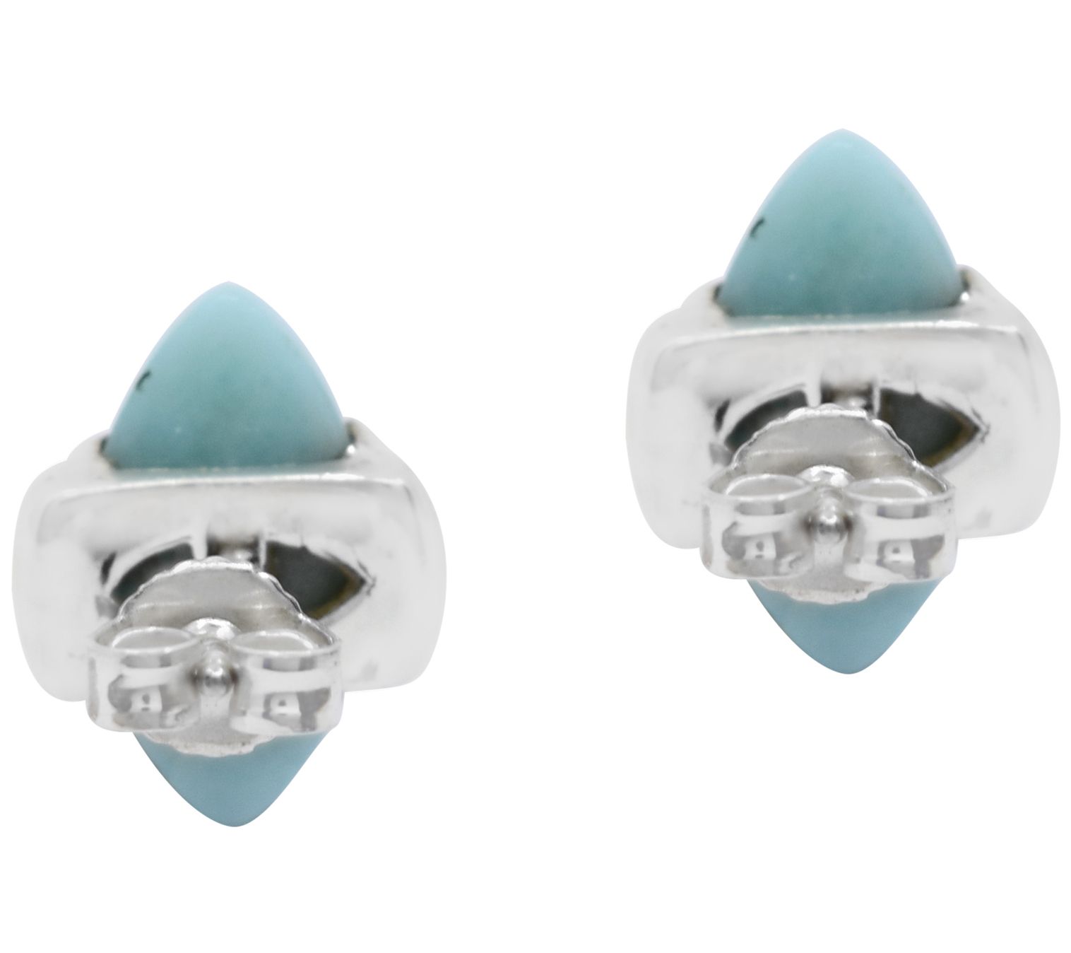 Sterling Silver Half Bezel Larimar Stud Earrings