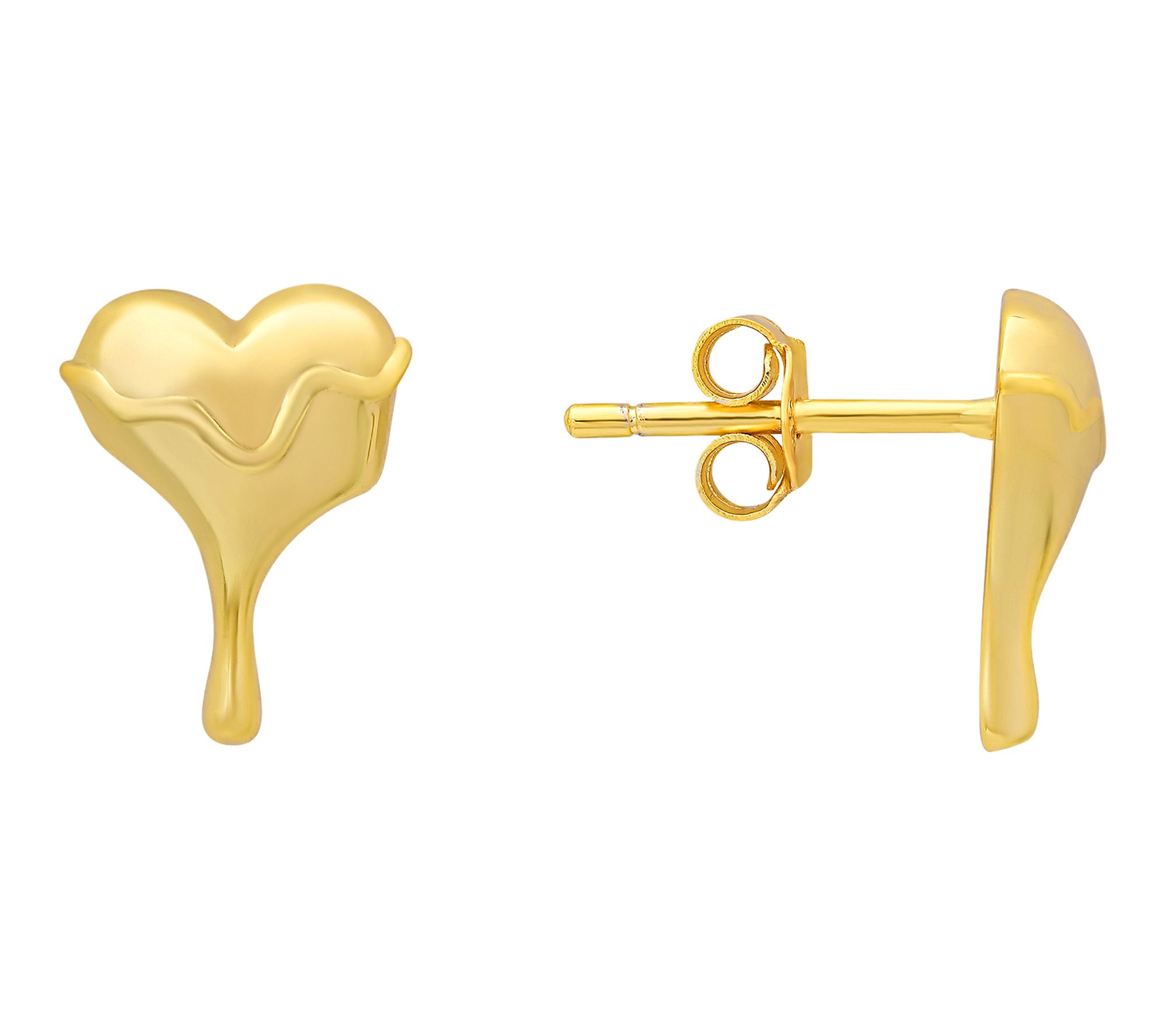 • Stud style; minimal, fluid heart design; polished finish